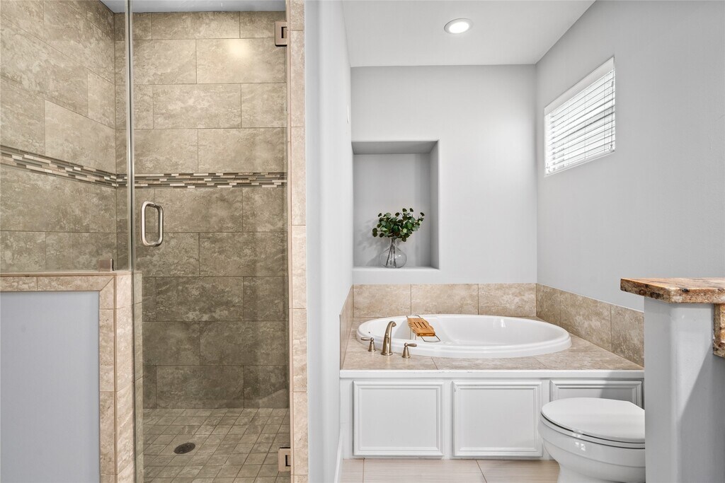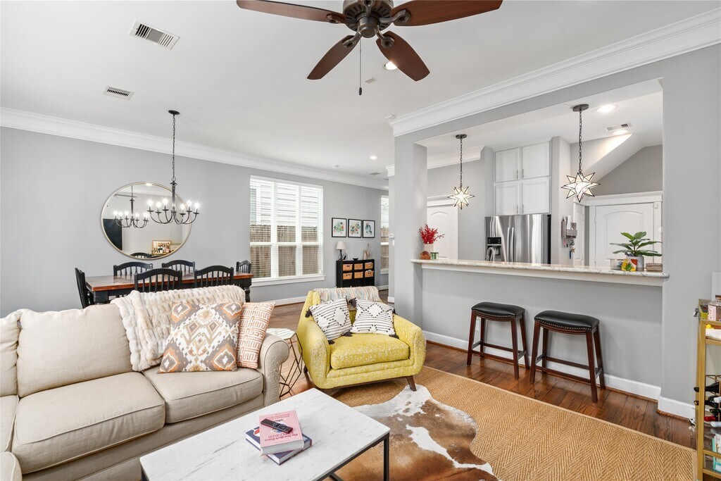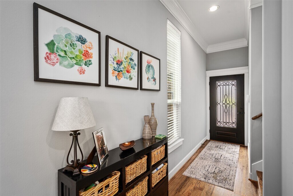 This end-unit home offers rare first-floor living with an open layout and hand-distressed hardwoods in main areas,both staircases,and hallways. The spacious kitchen features ceiling-height cabinetry,stainless steel appliances,breakfast bar,and custom lighting. The primary suite boasts a tray ceiling,two closets,jetted tub,separate shower,and granite double vanity. The third-floor gameroom (or 4th bedroom) includes its own full bath with closet. Located in an great area with convenient guest parking,this gated community offers style,function,and unbeatable access to restaurants,shopping,and major freeways. MLS# 2291057