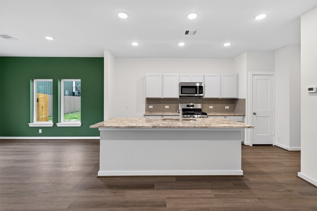 Discover 9113 Highland Northern Way in Highland Enclave,a gated community in Acres Homes. This elegant 2-story home features 3 bedrooms,2.5 bathrooms,9-foot ceilings,a back patio,spacious backyard,private driveway,and 2-car garage. The kitchen is equipped with modern shaker cabinetry,quartz countertops,tile backsplash,soft-close drawers,and stainless steel appliances. The primary suite offers two closets and an ensuite bathroom with dual sinks and a walk-in shower,along with a dedicated workspace ideal for a home office. Additional highlights include luxury vinyl plank flooring,LED recessed lighting,brushed nickel fixtures,energy-efficient windows and HVAC,a smart thermostat,landscaped front yard with sprinklers,and garage storage. MLS# 6790615