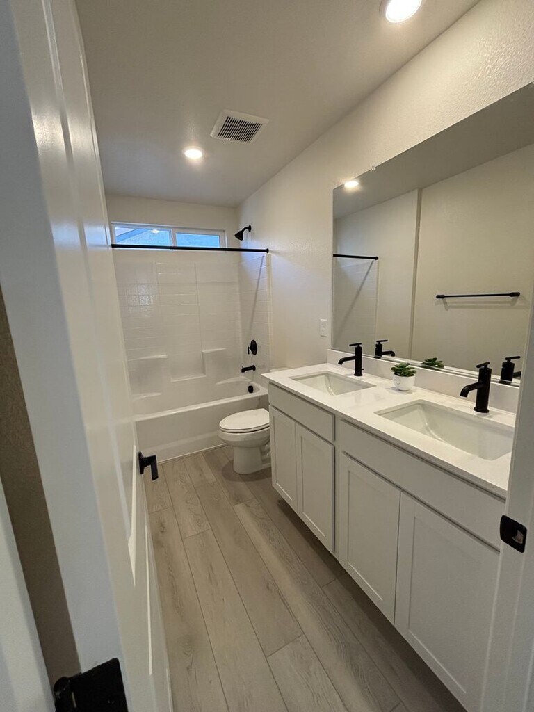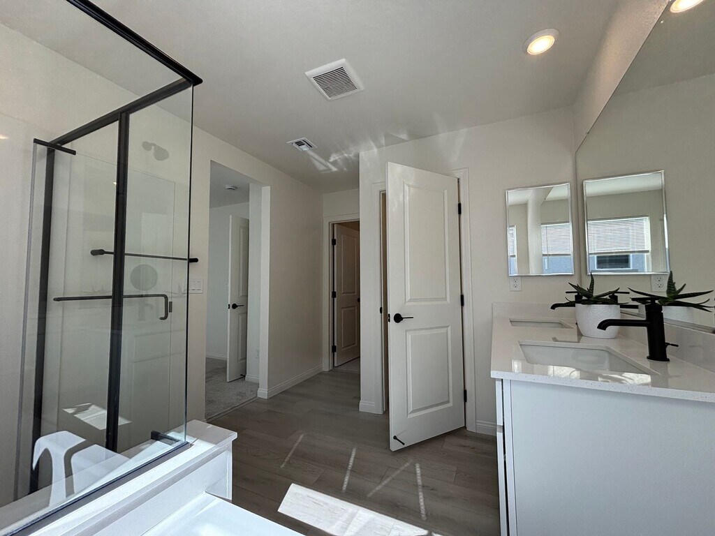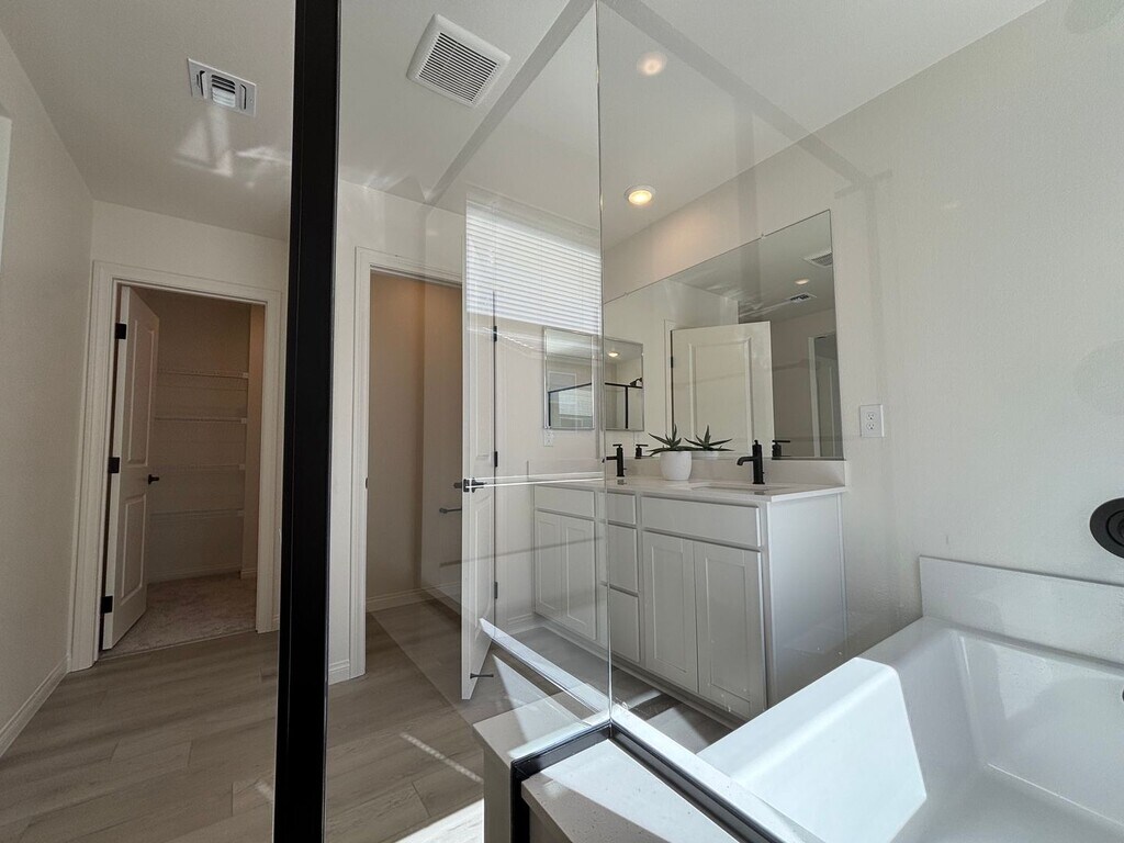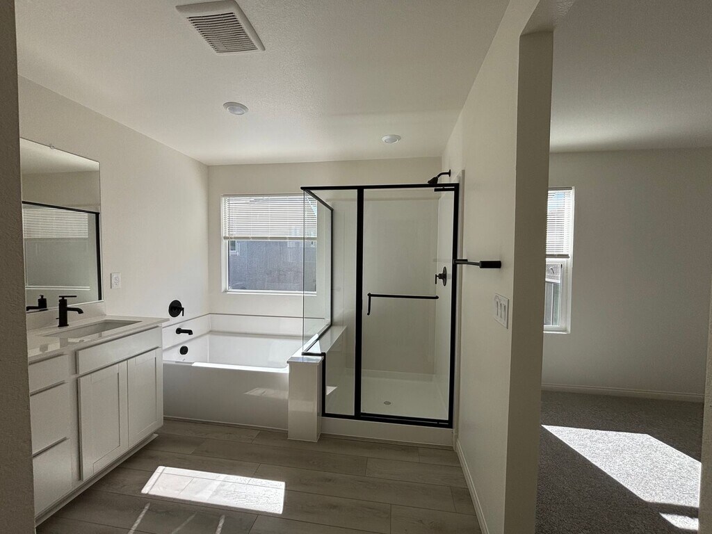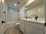 Beautiful open-concept floor plan featuring 9-ft ceilings on the first floor, modern white PureStyle cabinets, elegant quartz countertops, and stainless steel appliances. The primary suite includes a spacious walk-in closet and a luxurious bath with a separate tub. Additional highlights include ceiling fan pre-wires, a tankless water heater, paved driveway, upgraded luxury vinyl plank flooring and carpet, BBQ gas stub, soft water loop, and more!