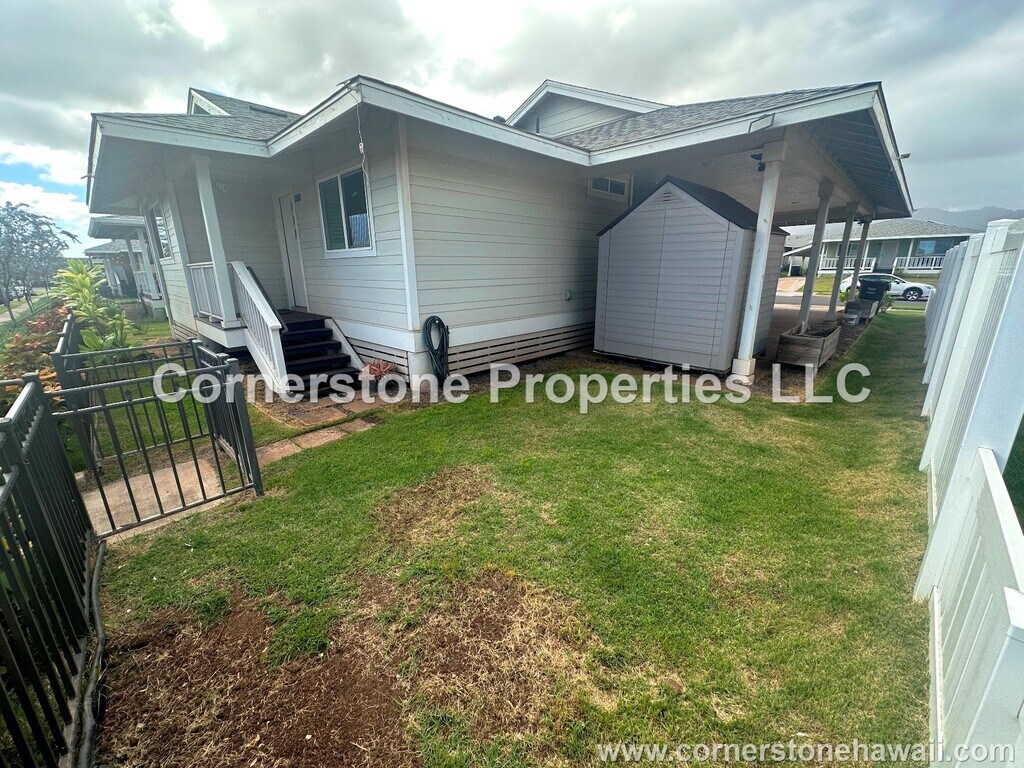 Highly upgraded home w/ a large yard! Enjoy living in this partially furnished 3 bedroom, 2 bathroom, 4 parking Single Family Home in Ho'oulu at Ho'opili. Furnishings pictured can be removed upon request. Near schools, shopping centers, parks, military base, the beach, and restaurants. VIRTUAL TOUR: PROPERTY DETAILS: - Unit Type: Single Family Home - Approx. Square Footage: 1152 - Year Built: 2019 - Bedrooms: 3 - Bathrooms: 2 - Parking: 2 Car Carport + 2 Driveway UNIT FEATURES: - Full Size Stacked Washer & Dryer (gas) - Dishwasher - Disposal - Refrigerator with Ice Maker - Gas Stove/Oven - 2 Split ACs in Living Room and Primary Bedroom - 3 Ceiling Fans in Bedrooms - Gas Water Heater - Open Yard - Covered Deck (front and back) - Window Coverings: Horizontal Blinds - Flooring: Carpet and Laminate - Furnishings pictured can be removed upon request AMENITIES: - Pool - Recreation Center - Playground - Park - BBQ Area - Site Manager UTILITIES: - Included: None - Tenant Responsibility: Electricity, cable, internet, alarm, phone, pest, yard, & gas (if applicable) LEASE TERMS: - No smoking - Sorry, no pets - Available Date: 2/16/2026 - Lease Length: 6 months ONLY - Professional cleaning required upon move out by an approved vendor of Cornerstone Properties - Renter's insurance required: with $300,000 liability coverage and Cornerstone Properties listed as an additional interest - All adults 18 years old and older must apply - Application fee: $35 (Non-refundable) Visit to apply. To inquire, email: PROPERTY CODE: 1226KAL Cornerstone Properties, LLC: RB-20789 *DISCLAIMER: Cornerstone Properties is not responsible for any inaccuracies or misprints on this website or other subsequent websites and reserves the right to make changes without notice. Our rental units are considered available until an applicant is approved, the security deposit is paid, and the lease is executed. Please be advised that although a property is listed as available, it could be in the process of a lease signing or may have just been rented. Please call our office to inquire. All availability dates are approximate and not guaranteed.