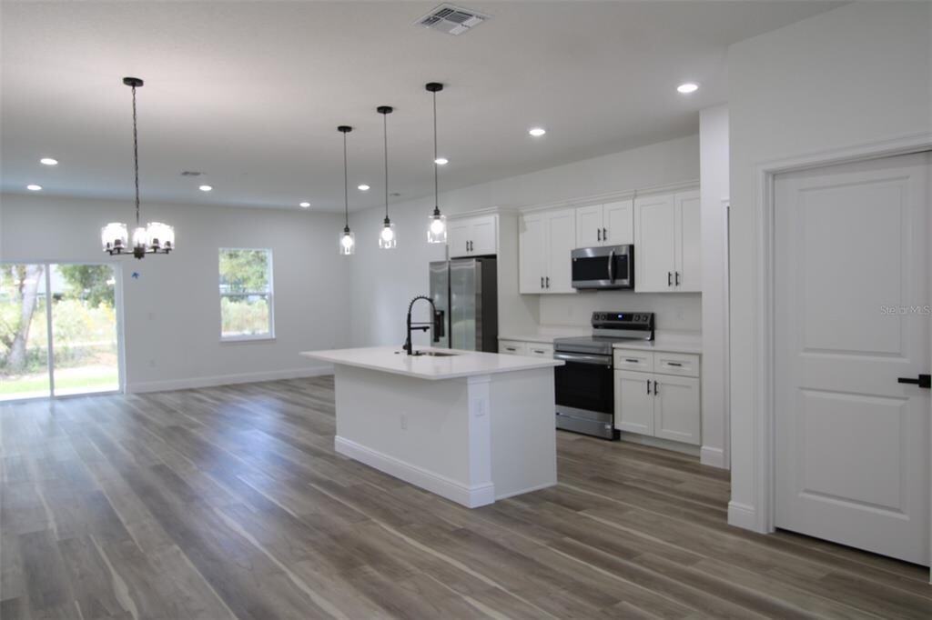 BRAND-NEW 4-bedroom,2-bathroom home available for rent featuring an open-concept layout with abundant natural light,wood-look vinyl flooring throughout,and a modern kitchen with quartz countertops,contemporary cabinetry,and quality appliances. The primary suite offers a walk-in closet and a private bath with dual sinks and a freestanding soaking tub. Additional features include an interior laundry room and an attached 2-car garage with automatic door. Minimum 12-month lease required; one-month security deposit; $75 application fee per adult; tenant responsible for utilities and lawn care. Move-in ready—schedule your private showing today! MLS# O6378440