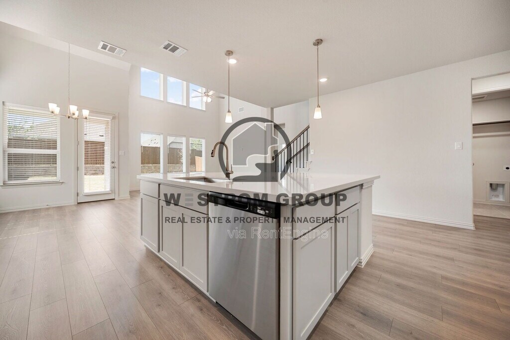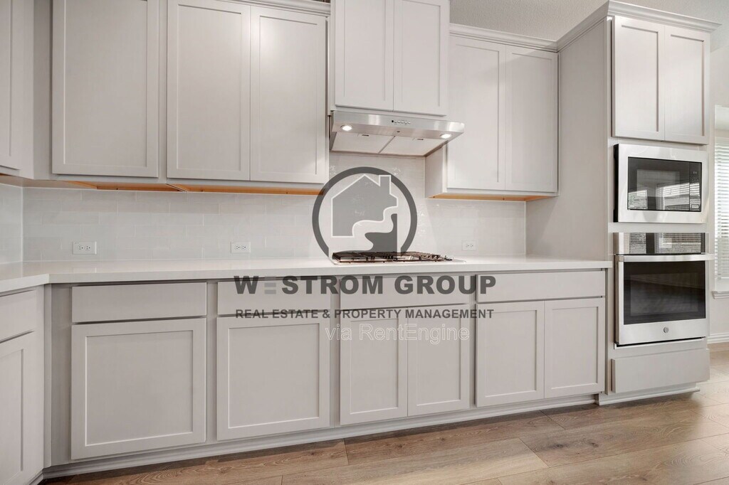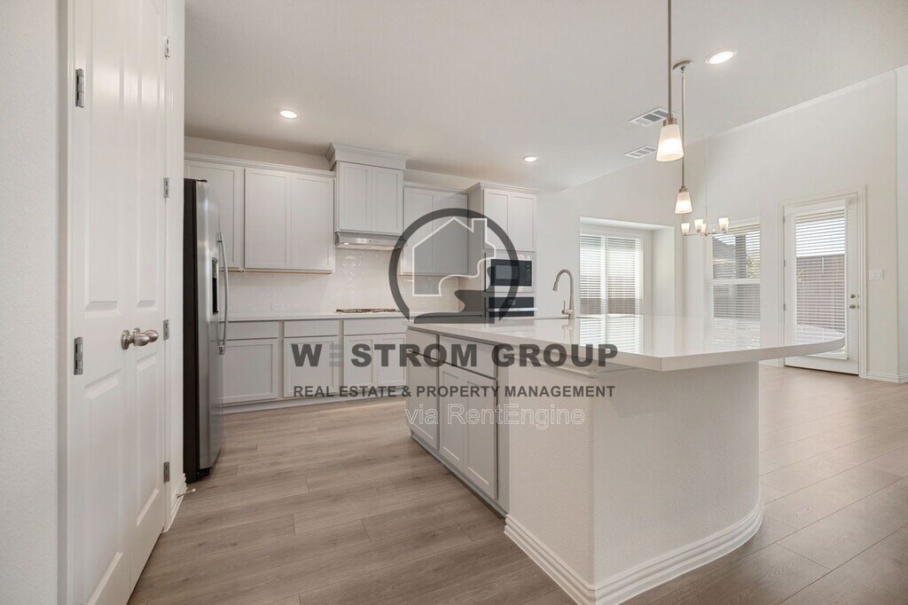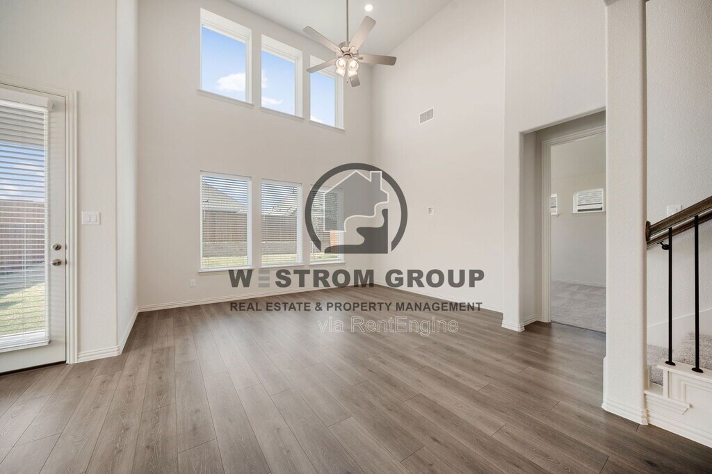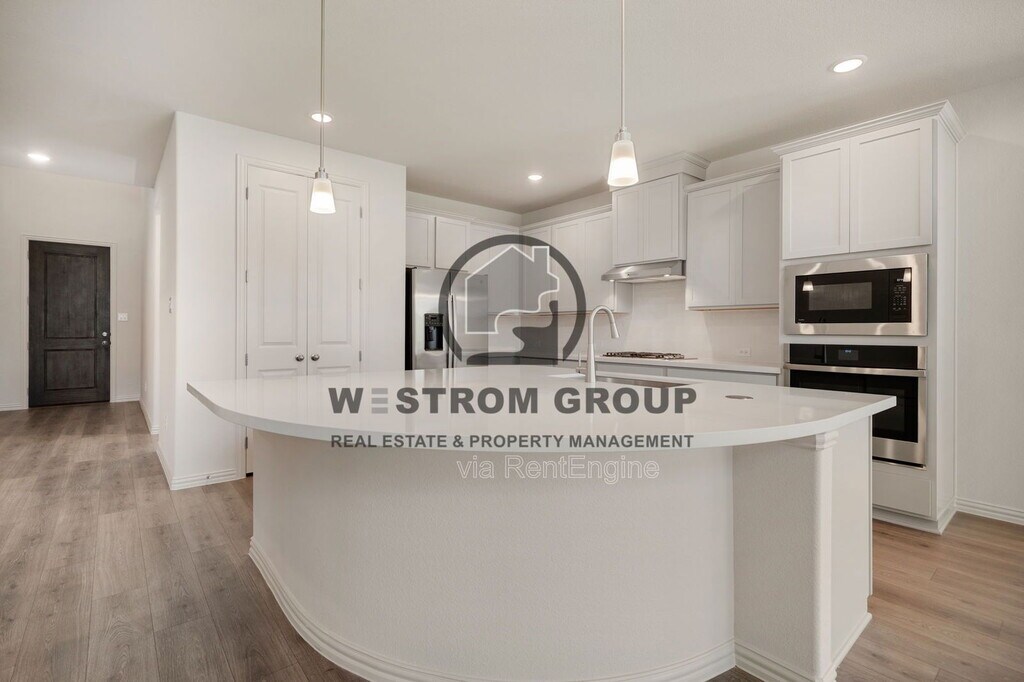 Start your next chapter in this brand-new 4-bedroom, 3-bath two-story home built in 2026, located in the Wildflower Ranch Premier community within Northwest ISD. With a spacious layout and modern finishes throughout, this home is designed for comfortable everyday living and plenty of room to relax or entertain. The home welcomes you with a landscaped front yard and an open layout featuring a mix of carpet, ceramic, and laminate flooring. The kitchen is equipped with built-in cabinets, granite-style countertops, a modern backsplash, kitchen island, breakfast bar, electric range, walk-in pantry, and refrigerator included, making it a great space for cooking and gathering. The kitchen flows into the living room and dining area, creating an open and functional main living space. Downstairs also features a half bathroom, a separate utility room with an area for a full-size washer and dryer, and the primary bedroom with built-in shelves and a private bathroom offering dual sinks, separate vanities, a garden tub, separate shower, and a walk-in closet. A second bedroom and another full bathroom are also conveniently located on the first floor. Upstairs you'll find two additional bedrooms, a third full bathroom, a bonus room, and a dedicated movie room, providing plenty of extra space for entertainment, hobbies, or a home office. Outside, enjoy a wood-fenced backyard with a covered patio, perfect for relaxing or spending time outdoors, plus a 2-car single-door garage for parking and storage. Disclaimer: Information deemed reliable but not guaranteed. Appliances shown in marketing materials or photographs are not guaranteed. Only appliances specifically listed in the executed lease agreement will be provided with the property. To Schedule a Showing, view rental and pet criteria, and required documentation to apply, visit our website at Completion of Pet Screening (No Pets, Animals and Pets) go to Further inquiries please email: or Call Deposit, Pet Fees, Rents Due within 24 HOURS OF APPROVAL! We do not advertise on FB Marketplace or Craigslist. All Westrom Group residents are enrolled in our RESIDENT BENEFIT PACKAGE (RBP) $45.95/MO - Includes renters insurance, HVAC air filter delivery (for applicable properties), credit building to help boost your credit score with timely rent payments, $1M Identity Protection, move-in concierge service making utility connection and home service setup a breeze during your move-in, our best-in-class resident rewards program, and much more! More details on - Screening Criteria and Residents Benefit Package page on our website. By submitting your information on this page you consent to being contacted by the Property Manager and RentEngine via SMS, phone, or email.