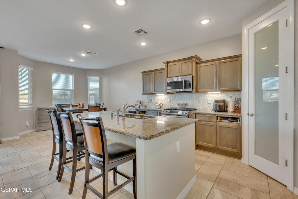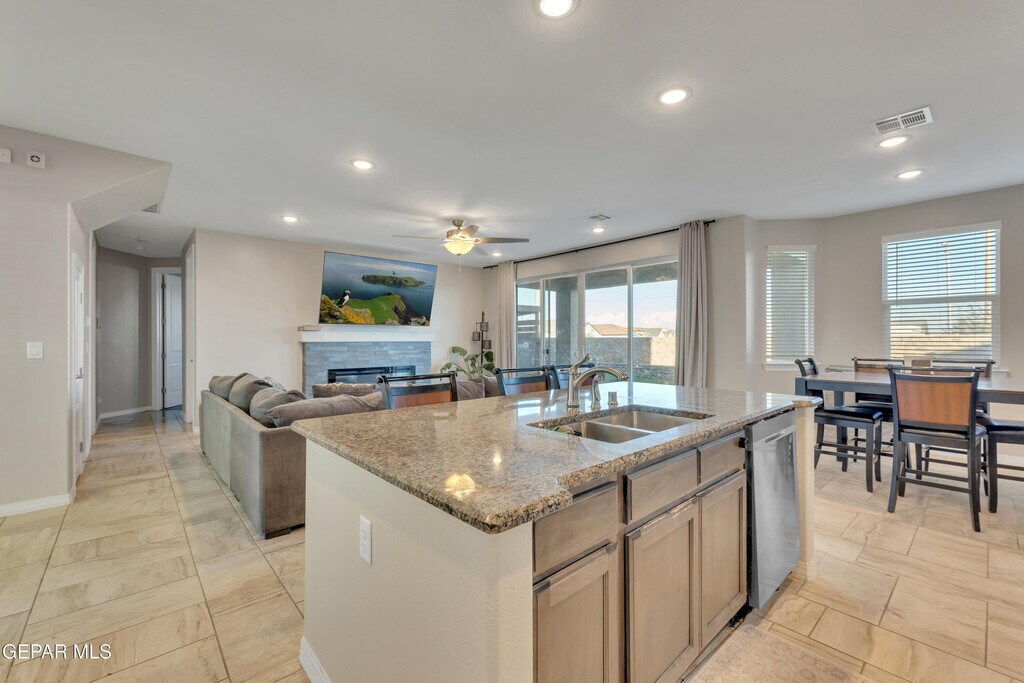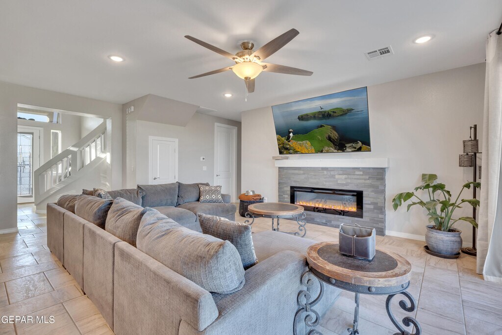 Took a look at this gorgeous home in far east El Paso. It is spacious and features 5 bedrooms,3.5 baths,2 living areas and balcony perfect for overlooking the sunrise. The focal point of the living room is a beautiful modern fire place. Have a lot of cars? This home has a three car garage and plenty of parking. The home is landscaped and has beautiful backyard perfect for hosting. Don't miss out on this amazing home.