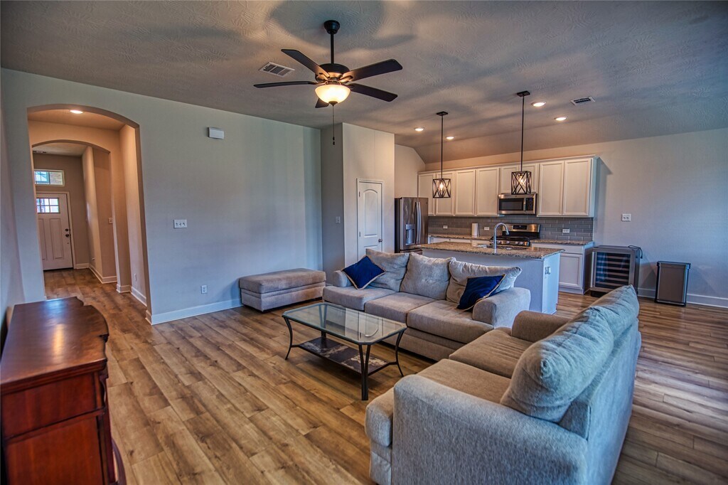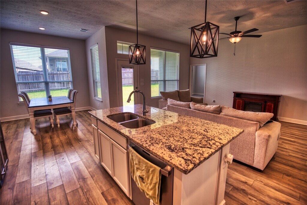 For Lease in Vintage Farms Subdivision – This charming 3-bedroom,2-bathroom home with an additional office offers an open-concept layout perfect for family living. Featuring high-quality LVP and tile flooring,the home boasts a spacious kitchen with granite countertops,a large island with a double sink,and appliances including a refrigerator,microwave,washer and dryer. The inviting dining area flows seamlessly from the kitchen. The generous primary suite is a true retreat with a separate tub and shower,double sinks,and abundant closet space. Additional storage is provided throughout the home. Enjoy the outdoors in the extra-large backyard,ideal for entertaining or relaxing. The home also features a two-car garage and an attractive brick,stone,and Hardie plank exterior. ±1,832 sq. ft. of living space. Furniture shown is available to stay with the home. Located in a desirable neighborhood with a prime location,this home is ready for immediate move-in. MLS# 33830866