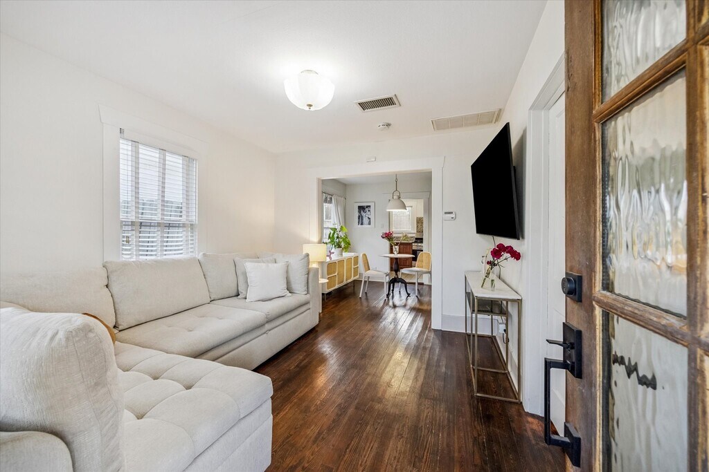 Experience the charm of Heights living in this beautifully updated craftsman bungalow set on a private 5,000 sq ft lot. An open floorplan with gleaming wood floors flows effortlessly,complemented by fresh paint (2022) and a stunning marble-clad shower with designer vanity,herringbone marble floors,and chandelier. Relax on the inviting front porch as summer showers pass,or enjoy the spacious backyard retreat,ideal for entertaining or unwinding. Natural light and timeless finishes create a warm,stylish interior that blends historic character with modern comfort. Added conveniences include a private driveway,EV charging,in-garage laundry,and included refrigerator/washer & dryer. Perfectly located,near 19th Street dining,boutiques,& coffee shops,plus easy access to the MKT hike/bike trail and Heights Blvd. Quick commutes to downtown and Houston’s key hubs make this move-in ready home the perfect blend of charm,convenience,and lifestyle. Welcome home! MLS# 57709055