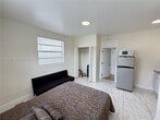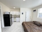 ONLY 1st month and Deposit to move in! WATER AND ELECTRIC INCLUDED WITH RENT! only 1 car space. RAPID APPROVAL .. UNIT CAN BE UNFURNISHED!! Discovery this cozy affordable studio apartment in the hear of hallandale! Ideal for a single tenant or minimalist lifestyle. Unit features large, glossy white tiles with gray marbling, New white kitchen cabinets, and freshly painted, giving a sleek, polished, and easy-to-clean finish. Newly renovated bathroom as well! Compact kitchenette along one side of wall by entrance Stainless steel refrigerator mid size, A round flush-mount LED fixture provides illumination directly over the kitchen area & 1 wall a/c unit. LARGE SHARED GRASS PATIO SPACE. Small pets ok $300 pet fee. MLS # A11966298