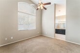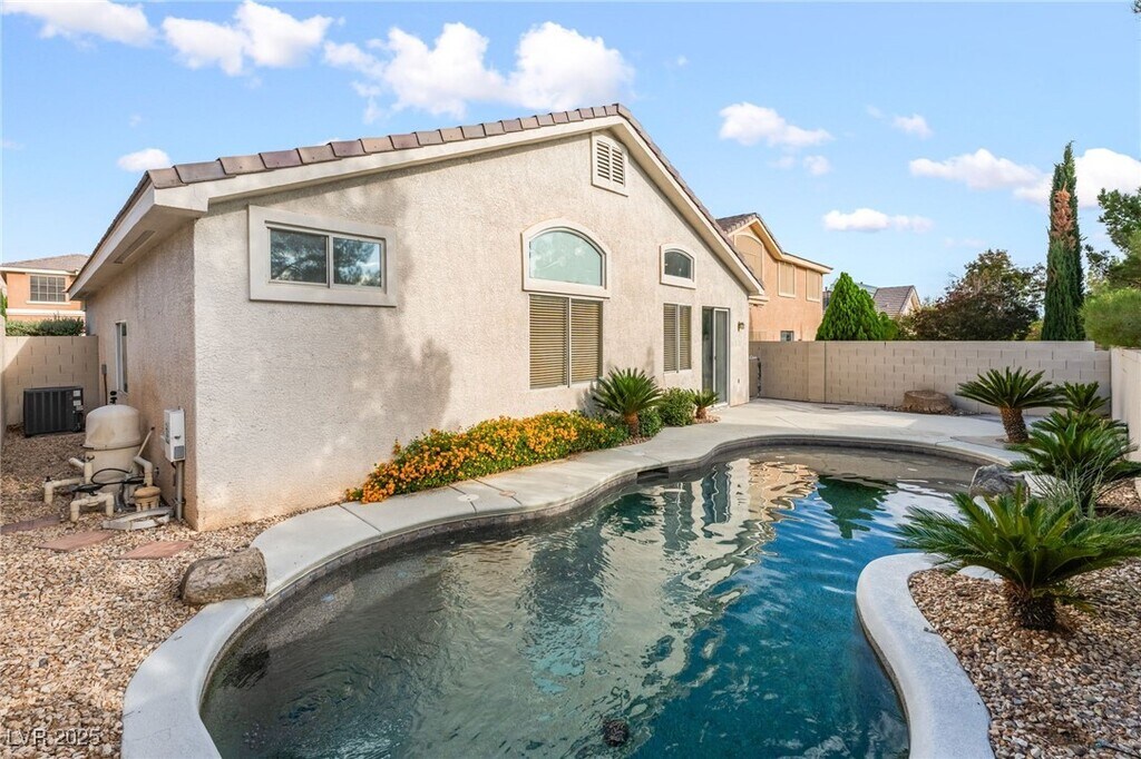Beautiful single-story home located in the heart of Summerlin! This inviting residence features an open layout with tile flooring throughout the main areas and a cozy fireplace in the living room. The kitchen offers dark cabinetry and stainless steel appliances, creating a stylish and functional space. The primary bedroom includes a walk-in closet and an en-suite bath with dual sinks, while the additional bedrooms provide plenty of comfort and flexibility. Enjoy your private backyard oasis with a sparkling pool, perfect for relaxing or entertaining, along with the convenience of a two-car garage.