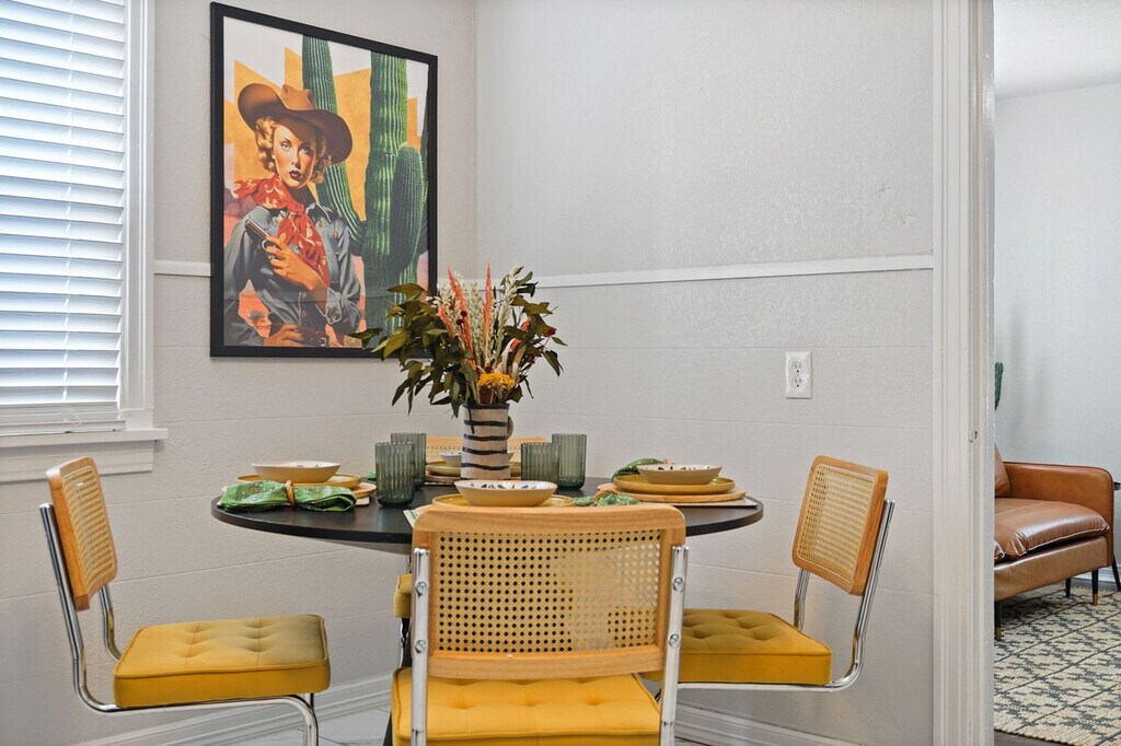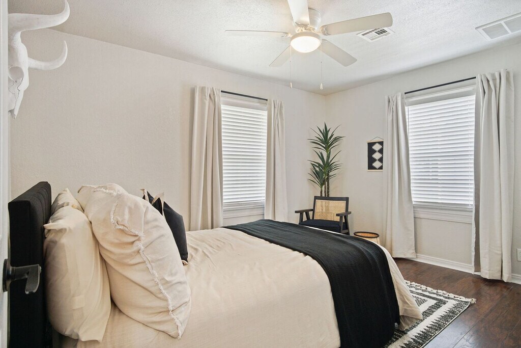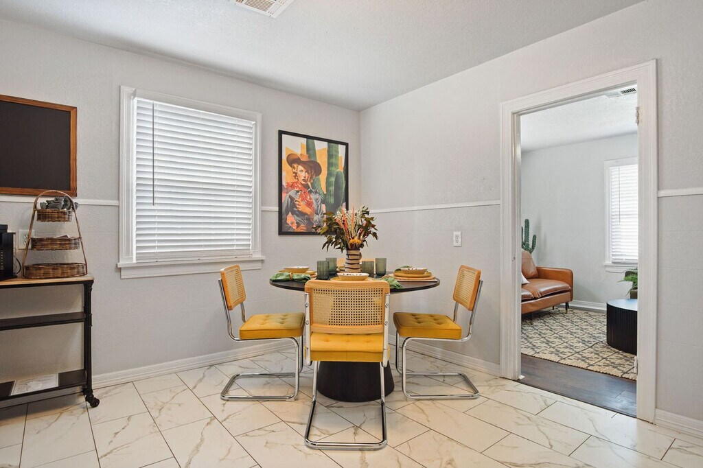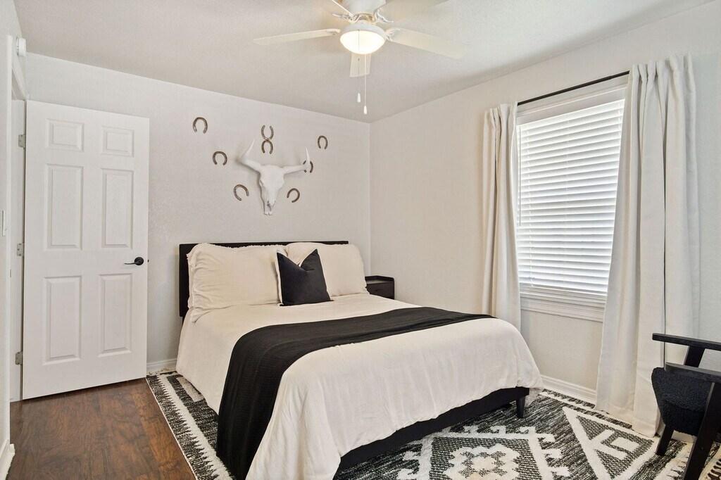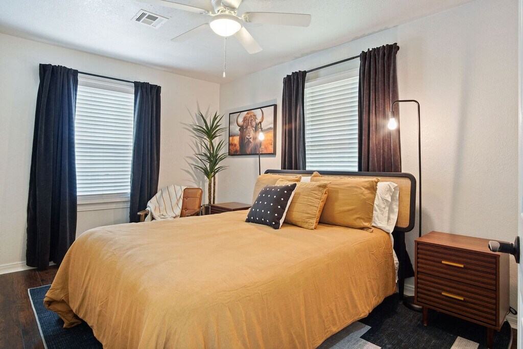 Feel at home in this freshly remodeled home, just a 3-minute drive or 10-minute walk to OU. This home offers comfort, charm, and the perfect location for your Norman stay. This charming home is the perfect retreat for two couples visiting for SEC games or a family of 4-5 looking to explore Norman. The space features two well-sized bedrooms, a fully equipped kitchen, and a spacious living room. The kitchen is larger than most, offering plenty of room for preparing your favorite meals and is fully stocked with modern appliances, cookware, and all the essentials. The home’s thoughtful décor and stylish furnishings create a cozy and inviting environment. One of the best features of the home is its large backyard, perfect for unwinding outdoors with string lights, a fire pit, Adirondack chairs, and yard games. Located in the heart of Norman, this charming neighborhood offers a perfect blend of convenience and local charm. It’s ideal for game day excitement, campus events, and exploring the vibrant college atmosphere, just minutes from the University of Oklahoma. You'll find a variety of dining options, coffee shops, and unique boutiques nearby. Reaves Park and Andrews Park are both close by, offering walking trails, playgrounds, and picnic areas. Historic Downtown Norman is just a short drive away. Conveniently located near W Lindsey St and I-35, it’s easy to get around Norman and beyond. It's a quick 5-minute drive or a 20-minute walk to the University of Oklahoma and about 25 minutes to Will Rogers World Airport. Local bus routes are easily accessible for convenient travel throughout the city. Space is available for a child on the leather sofa. Registration Number: STR24-0051 [SI]