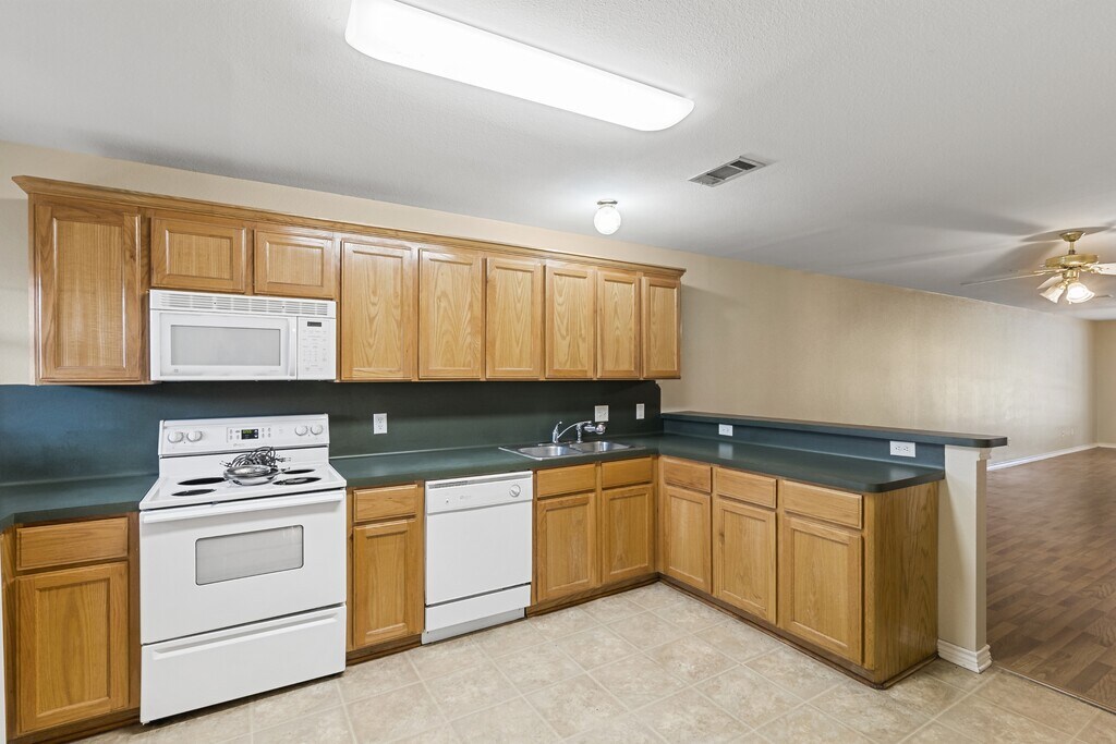 Pre-leasing for August 2026 Move-in! This 3 bed 3 bath brick home has a great layout and location. Just blocks from several neighborhood parks, and a short distance to restaurants, coffee shops, grocery stores and entertainment venues. Walk in the front door to the living room overlooking the eating area and spacious kitchen featuring an eating bar and all major appliances. Each bedroom has its own full bathroom and the washer and dryer with storage and hanging space above are provided by the owner and included in rent. The back yard is fully privacy-fenced featuring a storage room and a back patio. Schedule your tour today!