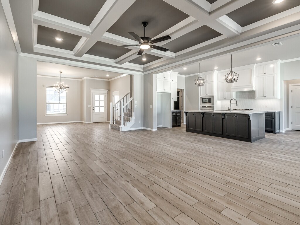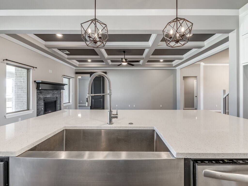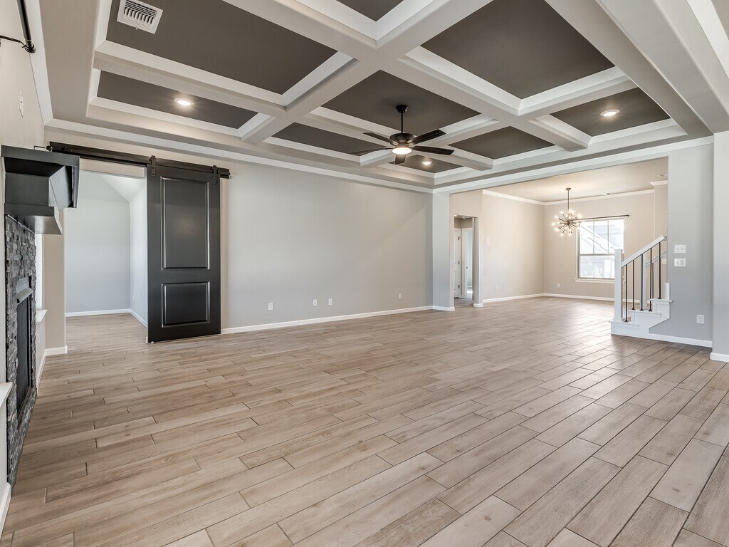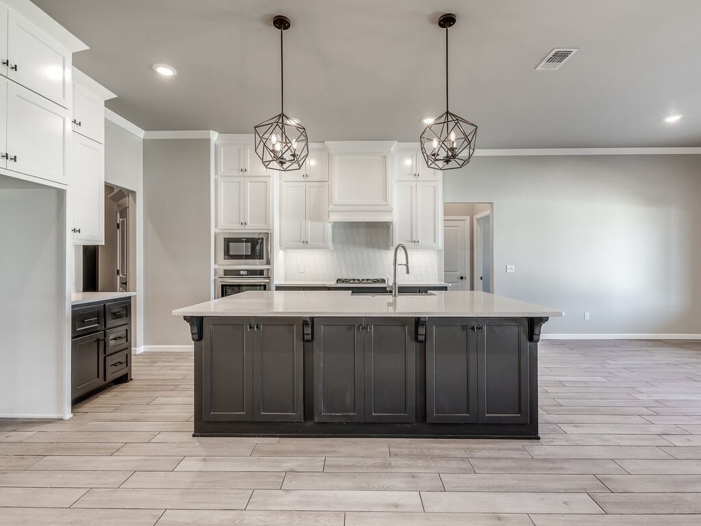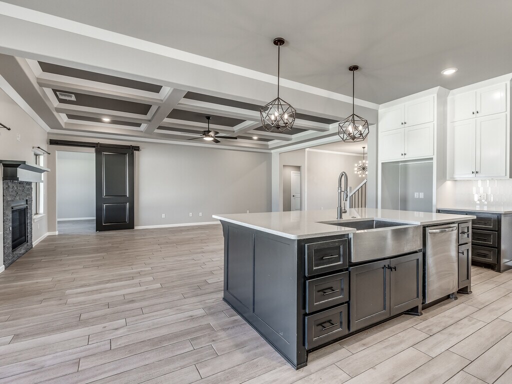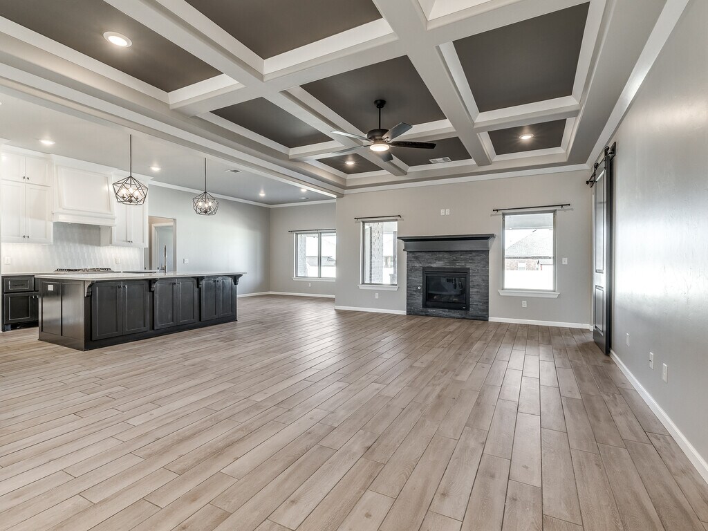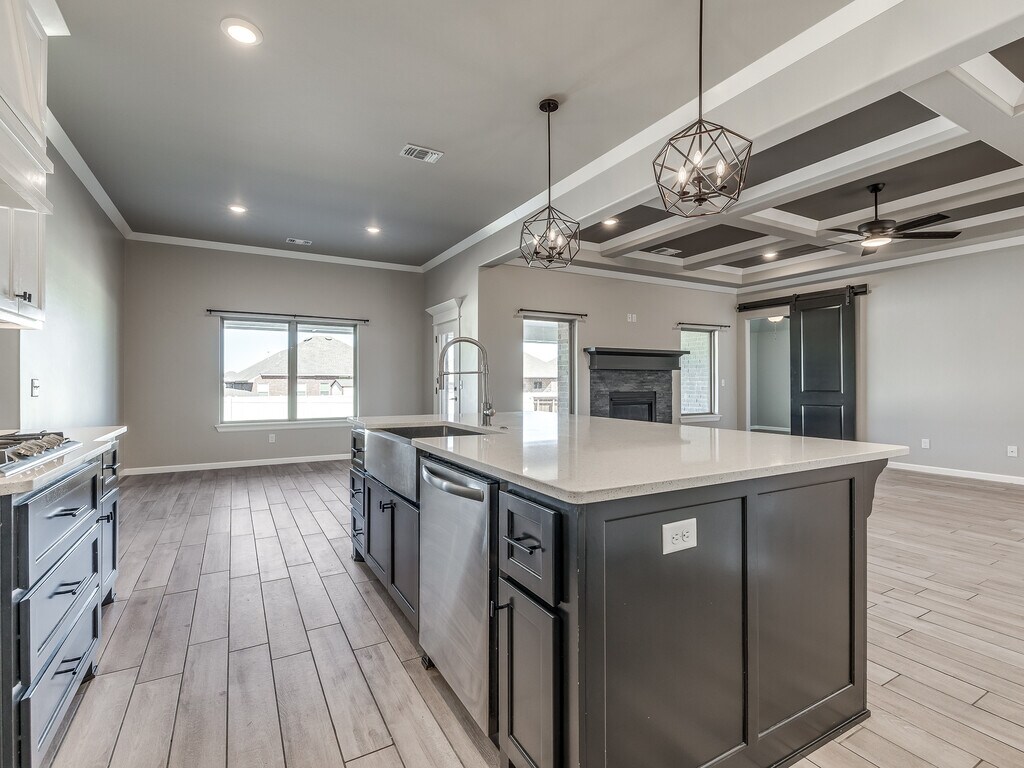 9121 NW 115th Terrace, Yukon, OK 73099 Rent: $3,400?|?Security Deposit: $3,400 5 Bed?|?3.5 Bath?|?3,700 Sq Ft This stunning 5-bedroom home offers over 3,700 sq ft of living space, featuring an open floor plan with a coffered ceiling, gas fireplace, and barn door in the main living area. The chef's kitchen includes stainless steel appliances, quartz countertops, a farmhouse sink, decorative backsplash, and custom cabinetry. The primary suite features a walk-in shower, whirlpool tub, dual vanities, and large closet. Enjoy the extended covered patio with outdoor fireplace, perfect for relaxing or entertaining. Additional highlights include a three-car garage with storm shelter, two dining areas, and a private study. Landlord is property owner.