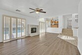 Better than a model! This stunning home features custom paint, upgraded flooring, designer light fixtures, and granite countertops throughout. Plantation shutters add elegance in every room. Enjoy exquisite front and backyard landscaping with a resort-style pool and spa, covered patio, and fully customized outdoor spaces. The downstairs 5th and 6th bedrooms with a full bath are perfect for guests or multi-generational living. The spacious primary suite includes a cozy fireplace and a large walk-in closet. All appliances are included, and the family room wet bar is ideal for entertaining. Move-in ready!