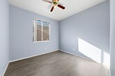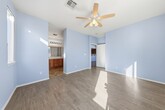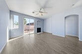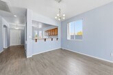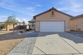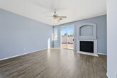 This hard-to-find single-story gem in the desirable South Strip/Silverado Ranch area offers an open, airy floor plan with fresh two-tone paint, and wood-like flooring throughout—no carpet anywhere. The spacious living area features a cozy fireplace and flows seamlessly into the kitchen and dining spaces, perfect for comfortable everyday living. All appliances are included. The primary bedroom is thoughtfully separated from the secondary bedrooms for added privacy. Ceiling fans are installed throughout the home, and the oversized patio and large corner lot provide plenty of outdoor space to enjoy. Homes like this are rare in such a prime location—and with no HOA, it’s even more appealing. Don’t miss out on this exceptional find!