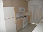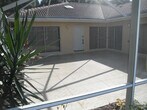 Beautiful Villa with 1200 square feet of living area and 2 master bedrooms. Fresh paint, vaulted ceilings, kitchen has a service counter into the dining area, a large screened in patio with a seperate storage room that backs up to open green space. (2) vehicles per unit. FIRST & SECURITY MOVE IN!