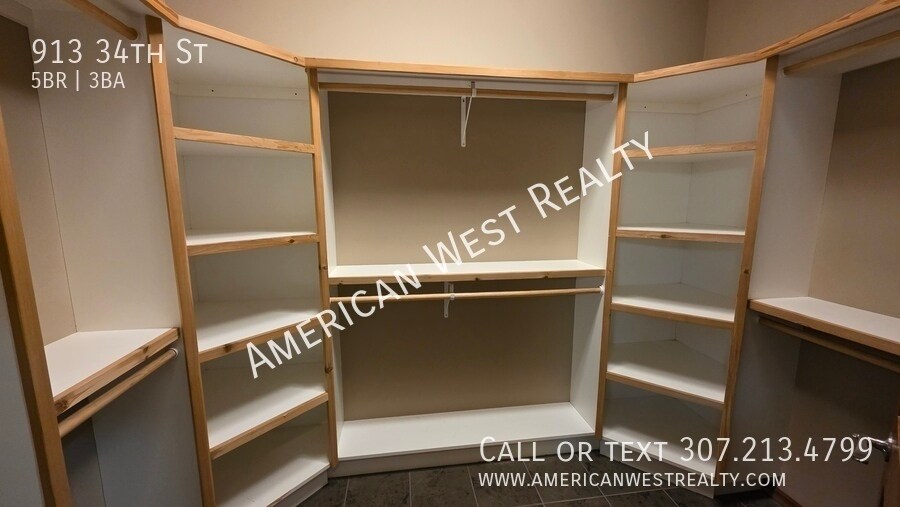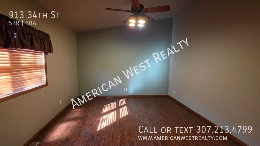 Check out this 5bed/3bath/2car home in the Holm View Subdivision, close to Sunset Elementary. Vaulted ceilings, hardwood floors, and an open floorplan for the kitchen, dining, and living room. The kitchen features steel appliances and ample storage space. Master suite with dual vanity, walk-in shower, and walk-in closet. Two more bedrooms and a full bath on the main floor. The laundry is located between the garage and kitchen with washer/dryer included. Downstairs you'll find a spacious living room with built-in bar, two more bedrooms, an office, and a full bath. NOTE: Bedroom #5 is non-conforming and does not have an egress window. _______________________________________ A $50 Lease Preparation Fee is due with your Security Deposit. All residents are enrolled in the Resident Benefits Package (RBP) for $46.95/month, which includes renter's insurance, credit building, $1M Identity Theft Protection, HVAC air filter delivery, move-in concierge service, resident rewards program, and more! Learn more at TENANT RESOURCES > APPLICATION AND RENTING POLICY. _____________________ General requirements: All occupants 18+ must apply and be approved $30 application fee per person Submit a government-issued picture ID Prove combined income of 3x monthly rent _____________________ The information presented is deemed reliable, but is not warranted. Interested parties are responsible for inspecting and confirming the accuracy, completeness, currency, and status of all information before renting. _____________________ INVESTORS: Are you looking for professional property management or a sales agent? Contact American West Realty and Management today to learn about our services! Air Conditioning Central Air Ceiling Fan Deck / Porch Fencing Fully Fenced Flooring Tile Flooring Vinyl Plank Garage Heat Forced Air Kitchen Dishwasher Kitchen Garbage Disposal Kitchen Microwave Kitchen Pantry Kitchen Refrigerator Kitchen Stove / Oven Sprinklers Automatic Utility Black Hills Energy Utility City Of Cody (Water, Electric, Sewer, Trash) Washer/Dryer In Unit