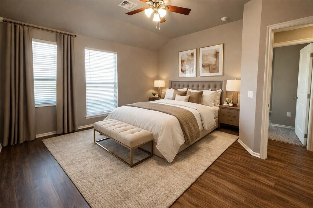 MOVE IN SPECIAL $500.00 OFF FFM This spacious three-bedroom,two-bathroom townhouse in a desirable neighborhood offers an open floor plan,perfect for comfortable living and entertaining. The kitchen features granite countertops,stainless steel appliances,and a dining area ideal for gatherings. The living room,which opens to the kitchen,enhances the home's inviting atmosphere. The owner's suite includes a walk-in closet,double vanity,tub,and a view of the backyard. Additional amenities in the home include extra storage space,a large walk-in laundry room with washer-dryer hookups,and a two-car garage. Located in a gated community,the community offers residents access to a gym,park,clubhouse,and comprehensive lawn care services