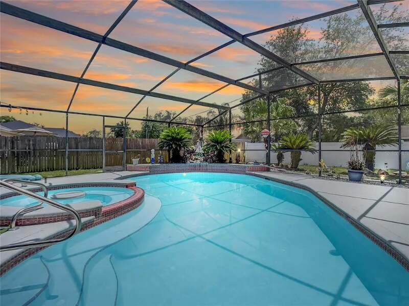 Property Id: 2181604 Welcome to this stunning brick-front 3BR/2BA home featuring a resort-style pool and spa with a cascading stone waterfall—the ultimate outdoor retreat! Inside, enjoy designer-remodeled bathrooms, a pool entry bath, and a spacious owner's suite (17' x 14') complete with a sitting area, dual vanities, and his-and-hers walk-in closets. The split floor plan provides privacy, while the open great room and kitchen create the perfect space for entertaining family and friends. Additional highlights include a large living room, laundry room, and plenty of natural light. Conveniently located near I-4, shopping, and restaurants, this entertainer's dream home is move-in ready—start planning your summer pool parties today!