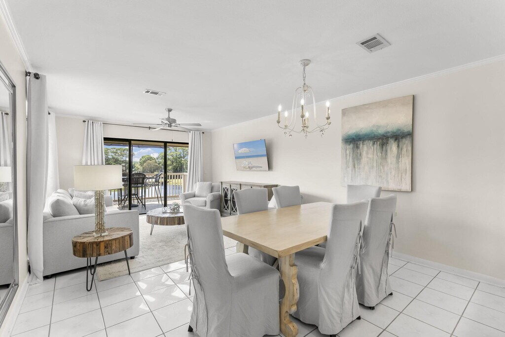 Fully furnished condo available 11/16/25-4/1/26. Monthly price varies between $2200-3350 depending on month. Please call for details. This fully furnished 2BR/2BA condo in Harbour Point offers a peaceful bayside retreat within the renowned SANDESTIN GOLF & BEACH RESORT(r). Perched on the 2nd floor, Unit 913 features an open layout with a fully equipped kitchen, new appliances, breakfast bar, and dining for six. Relax in the living room with flat-screen TV or step onto the private deck overlooking the water. Sleeps 6 comfortably with a king suite featuring balcony access and walk-in shower, plus a guest room with queen bed and twin bunks. Enjoy a 6-seat golf cart and resort living.