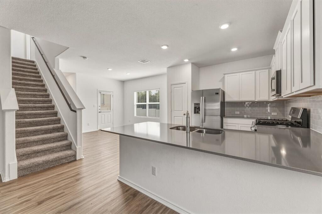 Beautiful 2 story home in the highly desirable Wolf Ranch community, offering a fantastic layout, modern finishes, and true move in ready condition. This well maintained home features vinyl plank flooring throughout the downstairs and carpet upstairs, with a spacious and functional floor plan. The main level offers an open concept living, dining, and kitchen area, perfect for both everyday living and entertaining. The kitchen is fully equipped with stainless steel appliances, ample cabinet space, and a large island that opens to the living area. A convenient half bath is also located downstairs. Upstairs you will find all bedrooms along with a large loft that can be used as a second living area, game room, or home office. The primary suite features a double vanity, soaking garden tub, separate walk in shower, and a large walk in closet. Two additional bedrooms offer generous closet space and share a full bathroom. The laundry room is located upstairs and includes a washer and dryer. The backyard is private and fully fenced with plenty of space to relax or entertain, with no direct rear neighbors for added privacy. Located in Wolf Ranch, one of Georgetown’s most sought after communities, with access to pools, parks, trails, and community amenities. Conveniently located near I 35, Wolf Ranch Town Center, and historic downtown Georgetown with shopping, dining, and entertainment nearby. Excellent curb appeal, abundant natural light, and a versatile layout make this home a great fit for a variety of living needs. Easy access to major employers, schools, and everyday conveniences. MLS ID 7873132