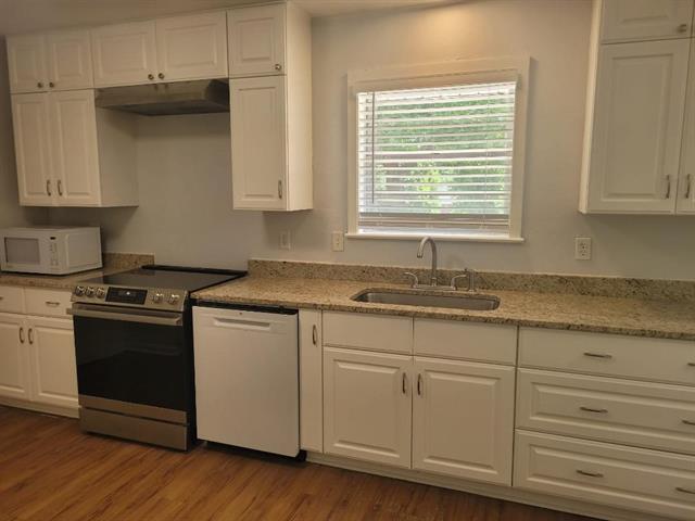 3 Bedrooms 2 full baths new kitchen cabinets good size yard, quite neighborhood. Close to major highways