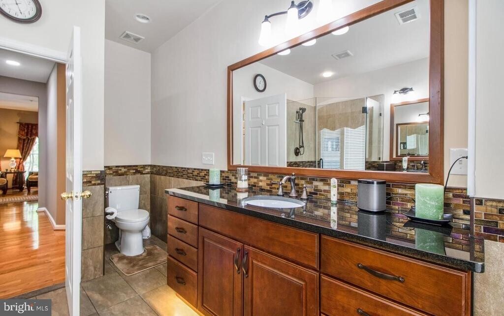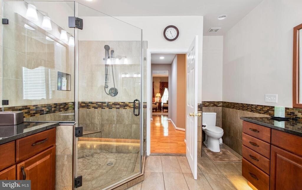 Exquisite high-end, solar powered, energy efficient townhouse with fantastic amenities. Located in the heart of the sought after King Farm neighborhood in Rockville, just minutes from rt-270/Route-355 & the metro, this 3-level home is bigger than it looks! No expense has been spared with the calculated updates for maximum functionality. The 2-story foyer featuring marble tiles and custom wall paneling. The main level is open and sunny, with 9 Ft ceilings, featuring natural hardwood floors, crown molding, and chair rails. The large family room boasts a gas fireplace, the kitchen has all stainless-steel appliances, granite counter tops, 42-inch cabinets and under cabinet lighting that illuminate the counter tops. A cozy breakfast nook with outside access is perfect for Sunday brunch! If you are into cars, you will fall in love with the custom garage featuring upgraded insulation, climate control, slat wall panels & epoxy flooring! Upstairs you will fall in love with the primary bedroom featuring spacious owner’s closets and en-suite bathroom. The pictures of the primary bathroom don't do it justice - you have to see it! Featuring all custom fixtures, soaking tub & shower! The third level has a huge rec room with 2 additional bedrooms and full bathroom! Solar panels for energy efficiency compliment this magnificent home! You'll be amazed at the savings you'll make on your ridiculously low electricity bill. Additional amenities in the neighborhood include a Clubhouse, 2 swimming pools with jacuzzi, parks and walking paths and trails, dog park, pickle ball and tennis courts playground and basketball courts. Close to Montgomery college, restaurants and shopping. Close to Shady Grove metro. Near to urgent care, physical therapy center, banks, UPS, post office, dry cleaners for your convenience. Transportation options include a regular Bus to BWI airport at $45, and a neighborhood shuttle to Shady Grove metro on weekdays. King Farm is an ideal neighborhood for families and businesses, with easy access to I-270, I-495, and three international airports. This property is a must-see.