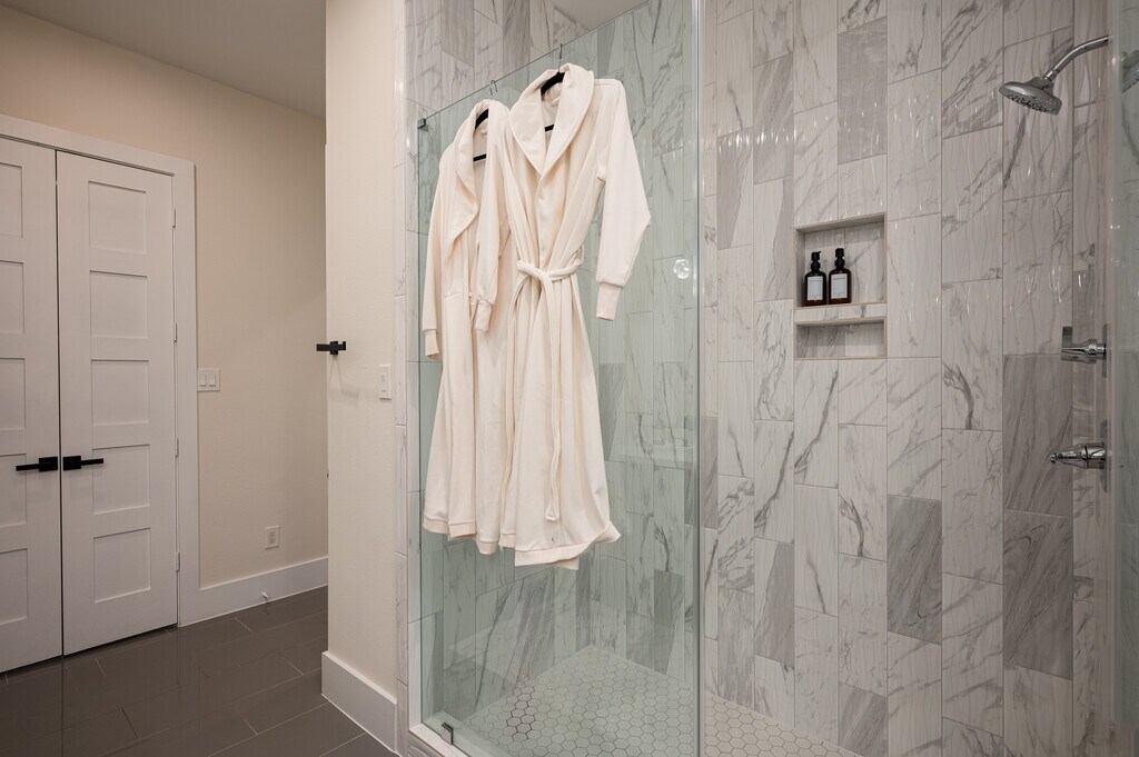 Video Tour ?? @539 Rentals The Eterne — Experience refined modern luxury in this stunning 4-story, 3,200 sq. ft. contemporary retreat, ideally located steps from Washington Ave and minutes from Downtown Houston, Montrose, and Buffalo Bayou Park. Every corner of this home has been designed with sophistication, comfort, and style in mind. • 3–4 miles to Downtown & RU • 6 miles to The Galleria & Memorial Park • 7 mi from NRG stadium and Texas Medical Center (TMC) The space WHAT YOU’LL LOVE ? Premium furnishings & layout ? Prime location @ Rice Military, walkable to Washington Ave ? Private rooftop lounge with bar area, grill, mood lights & city views ? Spa-style master king suite with balcony, huge walk-in closet & soaking tub ? Chef’s kitchen with high-end appliances, Monogram stove, stocked pantry & Nespresso Vertuo ? 75” Smart TV, board games, record player & white noise machines ? Dedicated workspace & fast WI-FI for business travelers ? Garage parking for 2 cars + free street parking ? Mini-gym/yoga equipment ? Beverage bar & complimentary beverages *** If The Eterne is booked, inquire about our other similar homes next door (links at the bottom of this page). THE LAYOUT 1F: 2 queen bedrooms, full bathroom 2F: Living room, kitchen, dining, office, terrace, powder room 3F: Master king suite, queen ensuite, balcony + mini-gym, laundry 4F: Rooftop retreat with bar & outdoor lounge ?? First Floor A calm welcome awaits as you step inside. The entry level opens to a walkway storage closet and two warmly appointed queen bedrooms, each crafted with comfort in mind. One offers a dresser and plush bedding- the other features an adjustable base, spacious closet, and a 55” TV. Both rooms are connected by a shared bathroom, ideal for families or guests who want to stay close. The ground-level access to the garage is for convenience. ?? Second Floor – Kitchen & Living This level opens into a bright, elegant living space with soaring 11-ft ceilings and a relaxed, modern atmosphere. The living room includes two designer sofas, accent chairs, a 75” Smart TV, and a cozy fireplace. The chef’s kitchen offers high-end stainless steel appliances, a Monogram stove, a French-door fridge, and a Nespresso Vertuo. Enjoy a dining table for eight, island seating for four, and a fridge stocked with water, soft drinks, and a complimentary bottle of wine. A walk-in pantry holds cookware, a toaster, a blender, and all essentials. Adjacent to the living area is a peaceful office space with a desk, a reading chair, games, and a record player. A terrace and powder room complete this level. ?? Third Floor – Private Suites A quiet queen ensuite sits at the front of the floor, complete with a plush mattress, walk-in closet, 55” TV, and bathroom with a soaking tub and shower. The master suite offers a king bed with premium linens, a spa-style bathroom with a soaking tub and a glass shower, a massive walk-in closet, and a private TV. Step onto the attached balcony to enjoy fresh air or use the mini gym and yoga setup. A dedicated laundry room and available queen air mattress add convenience for larger groups. ?? Fourth Floor – Rooftop Lounge At the top of the home lies the crown jewel: an inviting rooftop lounge glowing with soft string lights and offering open-air relaxation day or night. It transforms into a private outdoor escape with a beverage bar, lush greenery, a dining area with umbrella shade, and partial skyline views, creating the perfect setting for relaxing or entertaining. A BBQ grill and utensils are ready for outdoor cooking or evening hangouts. PARKING A two-car garage is available. Additional free street parking is available on the adjacent side street on a first-come, first-served basis. Guest access Guests will have access to the entire property, including the 4 levels with a private rooftop deck, during their stay. 24/7 self-check-in via keypad. Other things to note • 4 stories, no elevator • Air mattress, Pack ’n Play, crib, and high chair available only on request (please notify us before arrival). • Early check-in & late check-out available on request at $50 per hour (subject to availability). • Luggage drop-off is available on request (subject to availability). • Long-term stays allowed (28+ days) at a discounted rate. ?? Please note that we require a $500 security deposit hold placed 2 days before your arrival. Don’t worry — it will be released 2 days after checkout as long as there’s no damage to the property. ?? For the safety and well-being of all guests, the fireplace is temporarily turned off for scheduled maintenance. The home is fully equipped with central heating, ensuring it stays warm and comfortable throughout your stay. HOUSE RULES • Please respect the property and neighbours. • No smoking indoors or in the garage $300 fee per violation • No parties, and unregistered guests • No pets allowed • Quiet hours: 10 PM – 8 AM to respect neighbors • Guests are responsible for any damages during their stay NEARBY LOCATIONS Entertainment ? Washington Avenue Entertainment District – 0.3 mi / 6-min walk ? PKL Social (pickleball courts & sports bar) – 0.3 mi / 6-min walk ? Downtown Aquarium – 3 mi / 8-min drive ? Minute Maid Park – 4 mi / 10-15 min drive Parks ? Buffalo Bayou Park – 2 mi / 7-min drive ? Memorial Park – 3 mi / 10-min drive ? Museum District – 3.5 mi / 10-15 min drive ? Rice University – 2 mi / 5-10 min drive Dining recommendations ? Truth BBQ – 0.3 mi / 6-min walk ? SOMA Sushi – 0.4 mi / 8-min walk ? The Coffee House at West End – 0.4 mi / 8-min walk ? Heights Mercantile – 1 mi / 5-min drive We have three similar homes right next door. If you're traveling with a large group, we offer a group discount if you book 2 or more listings at the same time. Feel free to send us a message. We look forward to hosting you!