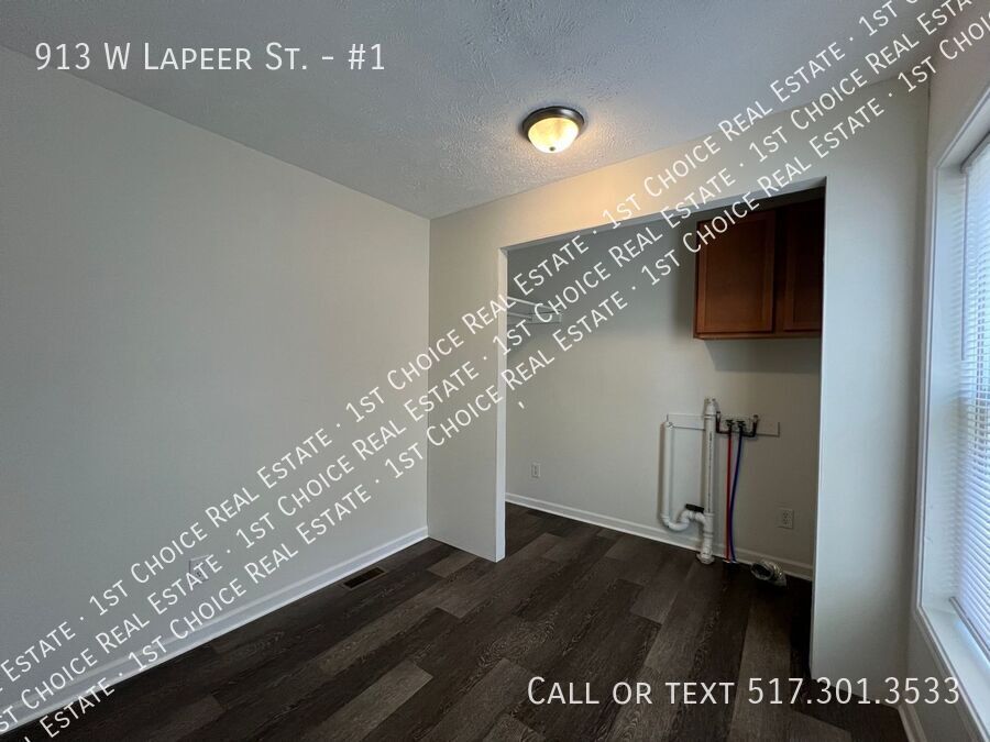 5-bedroom, 1-bath duplex in downtown Lansing. Private entrance. Front unit. Entry way, living room, kitchen, full bathroom and two bedrooms on the first floor. Brand new fridge. LVP flooring throughout the first floor. One bedroom on the first floor has carpet. One bedroom on the first floor has LVP and also doubles as the laundry room (washer/dryer hook-ups available). Three additional bedrooms upstairs, all with new carpet. Brand new flooring & fresh paint throughout. Many closets throughout this property. Shared shed. No AC. Tenant pays gas/electric/trash. $80 monthly flat fee for water/sewer. Tenant is responsible for lawn & snow maintenance. No pets allowed. No smoking. Parking for 2-3 vehicles, tandem style, in gravel driveway to left of duplex. *This property is licensed for a family or 2 unrelated occupants. Unable to approve more than 2 unrelated roommates. $40 non-refundable screening fee per applicant over the age of 18. Credit check will be ran. Security deposit will be 1.0-1.5 times rent depending on application score. Minimum credit score (Experian*) of 600 required. *Please note, Experian scores are typically slightly lower than Transunion and Equifax scores. 12-month lease required. Income requirement - gross monthly income at least 3x the rent. If you have any questions regarding this property, please contact our leasing department at or . Washer/Dryer Hook Ups