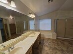 Vacant and move-in ready! Beautiful house in the Islands community with community pool,sports courts,walking trails and lake. Kitchen has granite counter,stainless steal frig. Washer and dryer also included! Laminate floor downstairs with living room,dinning area and 2 bedrooms. Master bedroom upstairs with carpet. Backyard has 5 mature fruit trees and paved. Has jacuzzi (in working condition per previous tenant,but owner not warranty the functioning) in the backyard.