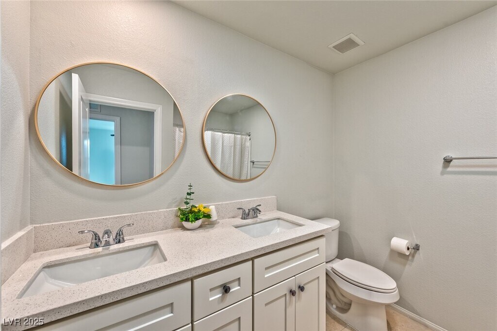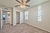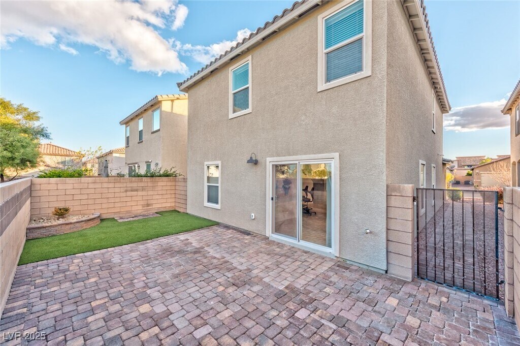 Welcome to this beautiful 4-bedroom, 3-bathroom home located in the highly sought-after Southwest Las Vegas area, with convenient access to the 215 freeway. Nestled in a well-maintained gated community, this home is ideally situated near top-rated K-12 schools, major shopping centers, restaurants, and family-friendly parks. Inside, you'll find a bright and open living/dining room layout featuring tile flooring, recessed lighting, and direct access to the backyard—perfect for entertaining or relaxing. The kitchen boasts granite countertops, abundant cabinet and counter space, a spacious pantry, and a convenient breakfast bar. One bedroom and full bath are located downstairs, ideal for guests or multigenerational living. Upstairs, enjoy a large primary suite with a private bath featuring double sinks, tile flooring, and a shower/tub combo. Don’t miss your chance to live in comfort and style—this home is a must-see and won't last long!