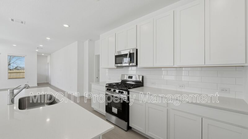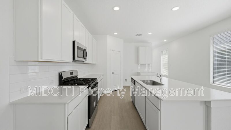 MIDCITI Property Management presents this brand-new single-story home for lease in the desirable Navarro Ranch community in Seguin! This modern 4-bedroom, 3-bath home features an open-concept floorplan with a spacious living area flowing into the kitchen and dining space, perfect for everyday living and entertaining. The kitchen offers ample cabinet space, modern appliances, and a large island/breakfast bar. The private primary suite includes a full bath and walk-in closet, while three additional bedrooms provide flexibility for family, guests, or a home office. A covered patio and fenced backyard make outdoor relaxation easy, and the home includes a 2-car garage and energy-efficient construction. Located in the growing Navarro Ranch master-planned neighborhood, residents enjoy access to community amenities including a swimming pool, fitness center, clubhouse, park, playground, and walking areas designed for an active lifestyle. The neighborhood also offers convenient access to nearby shopping, dining, and major highways for an easy commute to New Braunfels, San Marcos, and San Antonio. Navarro ISD. Available for immediate move-in.