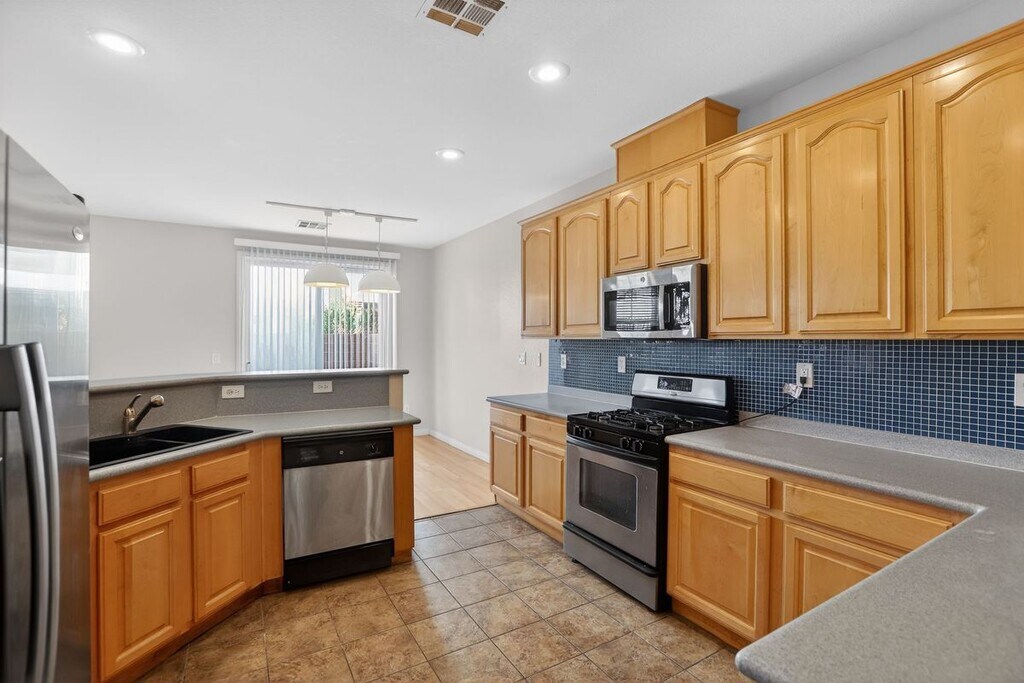3BR/2.5BA townhome with 2-garage, walk-in closet, fenced patio, and community pool in a desirable Centennial Hills community. This property is managed by Home365! APPLIANCES: Microwave, Stove, Refrigerator, Dishwasher, washer and dryer. TENANT IS RESPONSIBLE FOR: Electric, Gas, Water, Lawn Care. $39.95 Monthly charge for RBP (Resident Benefits Package), a great value for tenants. $250 Nonrefundable Setup Fee if approved. 600+ minimum credit score. 3x the rent in gross household monthly income. No past due collections on utility/phone/car. No evictions in the last 5 years. Min 1 landlord/professional reference. Late Rent payments considered in decision. No current or past criminal activity that would cause harm to the safety of neighbors or property management. Each Adult 18+ must fill out application and pay nonrefundable app fee. Rent $1,850/mo. Maximum total monthly rent $1,889.95, including $39.95 Resident Benefits Package.* Tenant also pays electric, gas, water & sewer.*