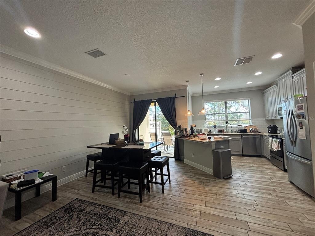 Stunning Lakefront Townhouse in Gated West Lake Townhome Community For Rent. Welcome home to this beautiful 2-story townhouse offering modern finishes throughout. The charming covered front porch offers a warm welcome home each and every day. The open-concept first floor features a seamless flow between the living room,dining area,and kitchen,all complemented by elegant tile flooring. The chef-inspired kitchen is equipped with stainless steel appliances and granite countertops,and enjoys a gorgeous lake view right from the kitchen window. Step outside to your partially covered back patio — the perfect spot to sip your morning coffee while soaking in the waterfront scenery. A convenient half bath and access to the 1-car garage round out the main level. Upstairs,you’ll find three spacious bedrooms,including a luxurious owner’s suite complete with dual vanities,a private toilet closet,and a large walk-in closet. A full guest bathroom serves the additional bedrooms,and a dedicated laundry room with a hanging rack adds everyday convenience. Renters would have access to the community pool. Food lovers will appreciate being minutes away from highly-rated dining options including Agave Social and Southern Luv BBQ. For outdoor enthusiasts,Carrollwood Village Park is nearby and offers walking trails,a splash pad,a beautiful lake,and recreational equipment for all ages. West Village Park is also close by with tennis courts,a basketball court,and a peaceful walking path. Shopping is a breeze with Westgate Plaza just a short drive away,offering everyday essentials including a Publix grocery store,along with a variety of other retailers and restaurants. Credit,criminal,rental history background check required,employment and rental verification required where applicable. Up to 2 pets accepted. Rent includes trash/water/sewer. Home can be rented as furnished or unfurnished. Schedule your private tour today! MLS# TB8476414