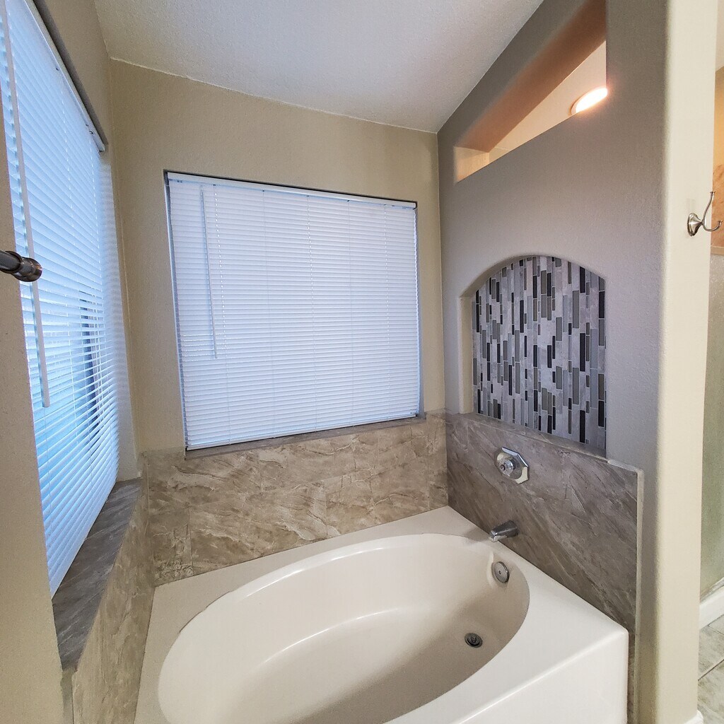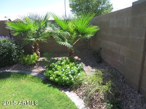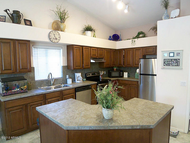 Private Quiet location in suburban Peoria, corner lot, boutique 3 bedroom 2 bath single level home. All tile, move in ready, garden back yard with flowering bushes and mature palm trees. Open floorplan, vaulted ceilings, unique triple patio french doors to enjoy the views. Step saving island kitchen with stainless appliances make meal prep a dream. Laundry room has newer Maytag washer & dryer. The main bath has both large oval soaking bathtub and walk in shower, skylight, private toilet room, double vanity sink, bay windows to enjoy views of the green yard. Main bedroom has substantial walk in closet and bay windows, ceiling fan. Storage -2 linen closets, pantry, coat closet, garage cabinets & 8 x 10 shed. Ready now.