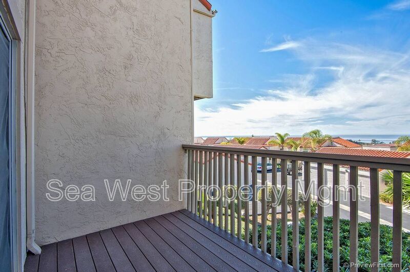 Experience stunning whitewater and ocean views from this fabulous two-story townhome in the sought-after Alta Mira community! Enjoy ocean vistas from both levels—whether relaxing in the living room, dining area, or either bedroom. The bright, open kitchen frames a picture-perfect Pacific view through oversized dining windows. The first floor features easy-care laminate flooring, while the second floor offers cozy carpeting. Upstairs, the beautifully remodeled full bath showcases custom tilework and a granite-topped vanity. Take in breathtaking sunsets from your private balcony, surrounded by neutral, inviting interiors ready for your personal touch. Alta Mira residents enjoy a sparkling community pool, spa, clubhouse, and convenient laundry facilities—all just minutes from beaches, freeways, shopping, dining, Costco, and LEGOLAND. Amenities: spa, pool, clubhouse