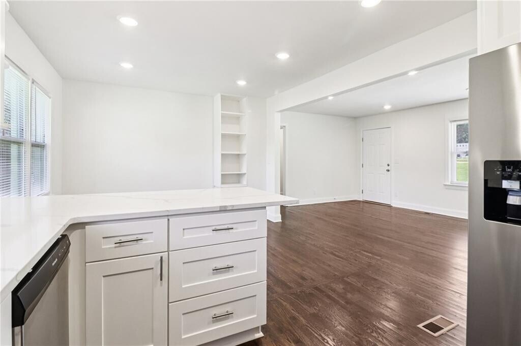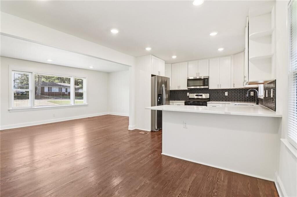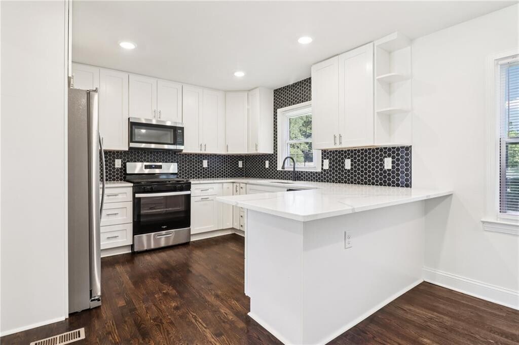 Welcome to this fully updated 3-bed,2-bath brick ranch nestled in the heart of Mableton. With 1,248 sq ft of bright,airy living,this home showcases gleaming hardwood floors,fresh paint,recessed lighting,built-in bookshelves,and wardrobe storage for seamless organization. The upgraded kitchen features crisp white cabinets,granite counters,designer tile backsplash,and stainless-steel appliances,perfect for both everyday living and entertaining. The oversized primary suite on the main level offers a peaceful retreat,thoughtfully separated from the secondary bedrooms. Modern baths sparkle,while the side porch overlooks a large,fenced backyard,ideal for weekend gatherings and gardening. Minutes from Mable House Amphitheatre’s events,just over a mile from the Silver Comet Trail,and close to dining,grocery,and entertainment,this home blends suburban charm with community convenience. Move-in ready and ready for its next story. Don’t miss this Mableton gem! $43 application fee per person. No smoking allowed. Pets allowed subject to approval and $500 non-refundable pet fee.