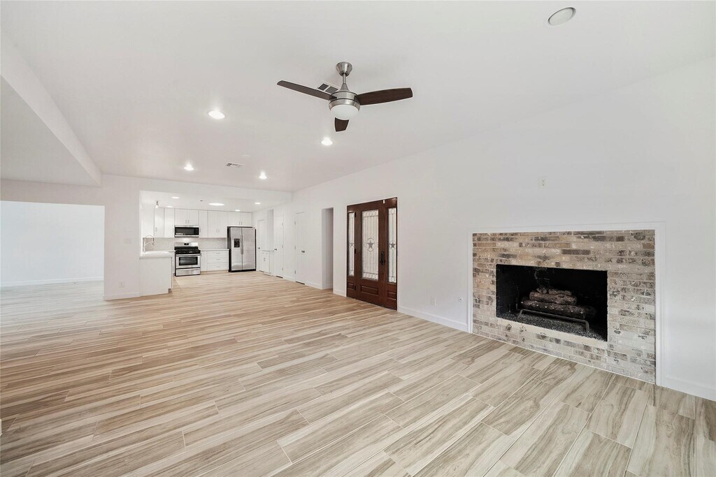 Excellent Neighborhood! Fantastic Location! Completely Renovated! This single-story home offers large open space & loads of natural light. 3 BD/2 BA located in back of home,nice & quiet. Formal living w/gaslog fireplace,open dining w/modern chandelier,large kitchen with SS appliances (fridge included). Flex room w/skylights could be breakfast nook,office,playroom,etc. Enclosed garage perfect for informal family living. Beautiful easy-to-maintain tile throughout. This home backs to Terry Hershey Park; direct access to miles of trails and outdoor space. Carport allows for shade from TX sun. Family-friendly neighborhood boasts active HOA that hosts many holiday gatherings/events (July 4th,Halloween,parades) & movie nights. Tennis,park and renovated pool/clubhouse are all included. Come take a look and see what this home and neighborhood have to offer! MLS# 46560557