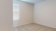This one-story new home offers 3 bedrooms, 2 bathrooms and a 2-car garage across 1,434 square feet of living space. The home features a thoughtful layout with two bedrooms near the kitchen area and owners suite towards the back of the home. The open concept design combines the kitchen and living room, creating a spacious and inviting atmosphere. The kitchen is equipped with modern stainless steel appliances, white cabinetry, and a convenient island, perfect for meal preparation and casual dining. Light-colored walls and ceilings throughout the home create a bright, airy ambiance, complemented by large windows that allow natural light to flood the spaces. The flooring varies between plush carpeting in the bedrooms and durable wood-look flooring in the main living areas and kitchen. A dedicated laundry room adds functionality to the home, while the presence of a front hall closet ensures ample storage space. The neutral color palette and clean lines of the interior design provide a blank canvas for personalization, making this home adaptable to various styles and preferences. Home comes with washer, dryer, fridge, ceiling fans in all bedrooms, and garage door openers. MLS ID 9706061