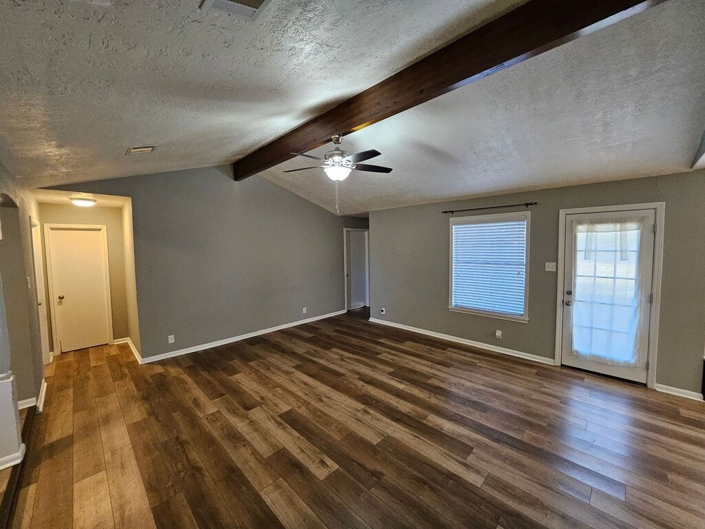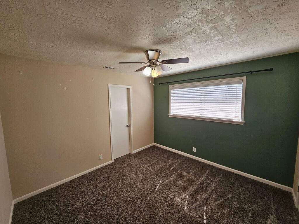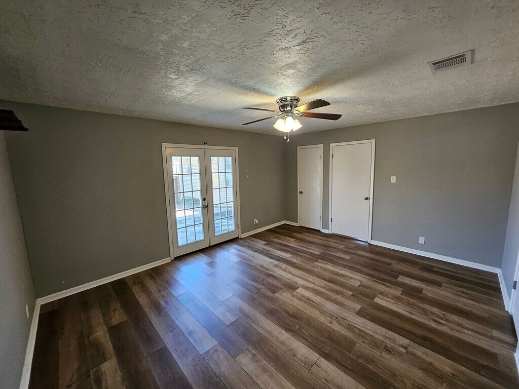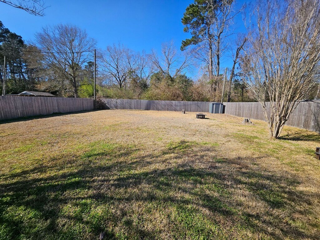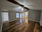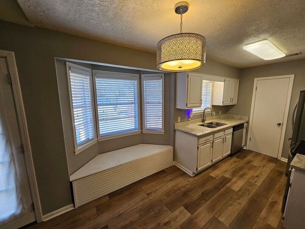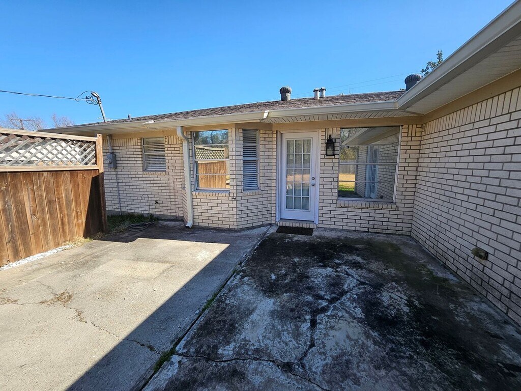 This quaint 3 bedroom, 2 bathroom brick home offers 1,460 square feet of cozy living space in Leesville, just a short drive to Fort Polk. The layout is practical and easy to enjoy, with a spacious living room featuring a vaulted ceiling with a wood beam and durable wood-style vinyl flooring throughout the main areas. The kitchen is open to the living room and includes a walk-in pantry, dishwasher, fridge, oven/stove, and a cozy bay window with built-in seating. There’s an attached dining area with a door that leads straight out to the patio courtyard, making it easy to enjoy the backyard. The primary bedroom has the same wood-style flooring, ceiling fans, and French doors that open to the backyard. The primary bath includes a dual vanity, tiled shower, and plenty of cabinet storage. Two additional bedrooms with carpet and ceiling fans share a Jack and Jill bathroom with a dual sink vanity, extra counter space, and a separate tub/shower and toilet area for added privacy. Outside, you’ll find a large fenced backyard with plenty of room to spread out, plus a patio courtyard area that’s great for relaxing or entertaining. The home also includes a two-car garage with washer and dryer hookups and is pet friendly. A solid, comfortable home in a convenient location—ready for you to move in and make it your own.