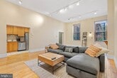 Located in a pridefully preserved condo building along the tree-lined Portico Row block of Washington Sq West, 914 Spruce St #9 is a large, extra-wide unit offering 2 bedrooms, 2 bathrooms, in-unit laundry, and a dedicated parking spot right out back. Out front, the property displays classic Philly architecture with a towering red brick facade, a vibrant garden, a marble portico, and a secure entry. Inside the unit, you're welcomed by a foyer with a deep storage closet. Beautifully aged hardwood floors extend into the expansive main living space that boasts soaring ceilings, a pair of tall windows, and a fireplace. There's plenty of room for hanging out and entertaining. The updated kitchen has generous cabinetry, granite counters, and a full suite of stainless steel appliances, including a dishwasher. Down the hall is a bright and airy primary bedroom suite with more picturesque windows, a walk-in closet, and an attached full bathroom. Completing the unit is a second bedroom with a custom closet, another full bathroom, and a laundry closet. Additional highlights include a parking spot that's accessed from the rear of the building, central a/c, gas heat, and gas hot water. 914 Spruce St's sought-after location earns a Walk Score of 95! It's only a few blocks from Center City, yet it has a small community feel. Local favorites like Habitat Coffee House, Kanella Grill, and Varga Bar are just steps away. Nearby 13th Street, known as Philly's restaurant row, features beloved spots including Little Nonna's, Vetri Cucina, Green Eggs Cafe, and Flambo. Enjoy sprawling green space at idyllic Washington Square Park, or stay active at Seger Park with its tennis court, dog park, and playground. A stroll down 9th leads to vibrant South Street, home to markets, shops, and eateries like Whole Foods and ACME. With Jefferson and Pennsylvania Hospitals within walking distance and a direct bus line to the University of Penn right on the corner, convenience is at your doorstep. Schedule your tour today!