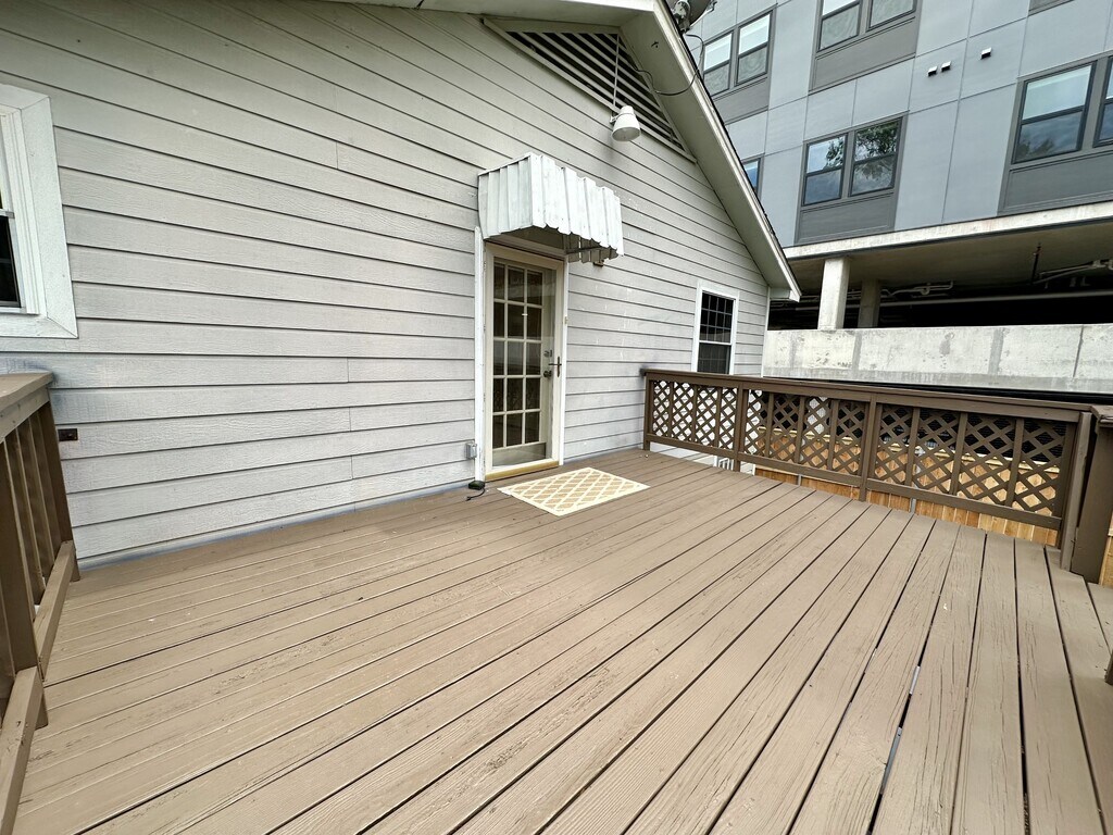 This charming 2 bed, 1 bath property is the perfect blend of nostalgia and modern convenience. With its own fenced yards and a beautiful mature tree, you'll feel right at home as soon as you pull up to the curb. Inside, you'll find refinished hardwood floors that add a touch of elegance to every room. Enjoy natural light and privacy with blinds throughout the entire house. Stay cool in the summer and cozy in the winter with ceiling fans in each room. This property also features a separate climate controlled room on the first floor for all your storage needs. And forget about hauling laundry around - this rental comes equipped with washer/dryer hookups conveniently located in the garage. Step outside onto your large deck off of the dining room and imagine hosting summer barbecues or enjoying a cup of coffee while watching the sunrise. Plus, with its convenient location to shopping, restaurants, and nightlife, everything you need is just minutes away. Schedule a viewing today!