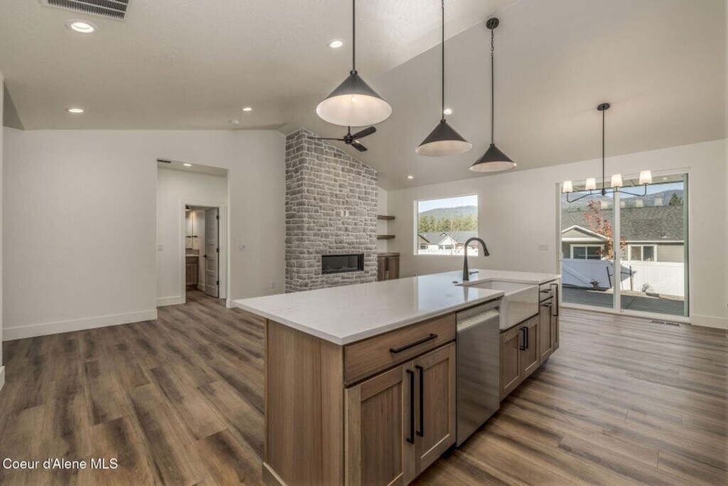 Welcome to the New Home in Thayer Farms North, a stunning new construction located in the charming town of Rathdrum, ID. This home boasts three spacious bedrooms + Office and two full bathrooms, offering ample space for comfortable living. The property features a three-car garage, providing plenty of room for storage. The front of the house is adorned with a covered patio and back yard has a covered patio area, perfect for enjoying the outdoors in any weather, RV/boat parking, fully fenced and landscaped with auto sprinklers. This home includes, Custom cabinets, large kitchen island, open layout with gas range, built-in microwave, refrigerator and dishwasher, gas fire place, central air conditioning, and luxury vinyl plank flooring, free standing bath tub and a walk-in shower, dual vanities, and lots of storage. The location is a true highlight, situated near parks and trails, Experience the perfect blend of comfort, convenience, and modern living in this beautiful home in Thayer Farms North.