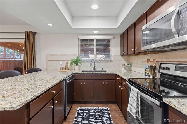 Welcome to Mansfield Avenue. This four-bedroom, three-bath townhome is located in the Cherry Creek Townhomes community with easy access to I-225, light rail, and RTD. Inside, you’ll find a functional layout with an open living and dining area that connects to a covered patio. The kitchen offers ample cabinet space and room to gather. Upstairs includes 4 bedrooms bedrooms, a full bath, and a primary suite with an en-suite bath. Enjoy low-maintenance living with two covered parking spaces and access to community amenities including a pool, clubhouse, and greenbelts. Conveniently situated near shopping, dining, and the Denver Tech Center. Condominium MLS# 7887397