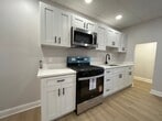 Discover this completely renovated Allentown row home offering the feel of brand-new construction. This spacious 5-bedroom, 1-bathroom residence features a bright, open-concept main floor with new luxury vinyl plank (LVP) flooring and recessed lighting throughout. The state-of-the-art kitchen boasts elegant white shaker cabinets, stunning white countertops, and a full suite of brand-new stainless steel appliances, including a gas range. Enjoy modern black fixtures and hardware in both the kitchen and the fully updated bathroom, which features a sleek corner glass shower. The property includes great outdoor amenities, including a charming covered front porch and a private, fenced, double-tiered back deck/patio perfect for entertaining. Experience premium, maintenance-free living in this fantastic property! Move in costs: One months rent one month security.