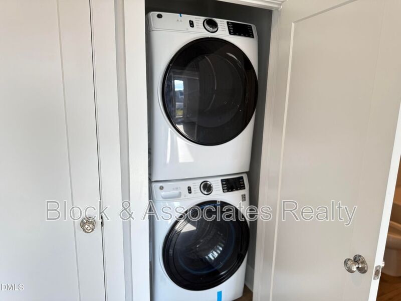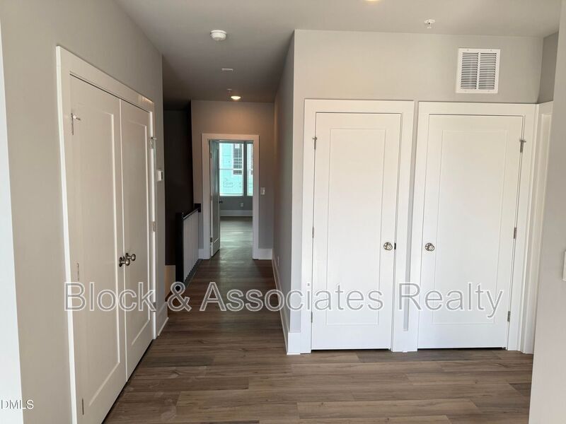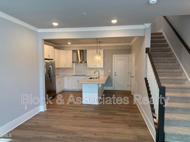 Brand new End-Unit luxury townhome-style condo in desirable downtown Cary location. Open concept main level with luxury vinyl floors throughout home. Kitchen has quartz counters, stainless appliances, and electric cooktop. Primary suite has oversized windows, two walk-in closets, and large bathroom w/dual vanity & walk-in shower. Second bedroom also has a private bath. Extra flex space upstairs perfect for an office or second living room. Balcony upstairs. One car garage for parking or storage. Washer/Dryer included. Convenient to shopping, dining, and highway. Ask about our tenant benefit package. Welcome Home! Please see Block & Associates website at for most accurate property details, photos, and application.