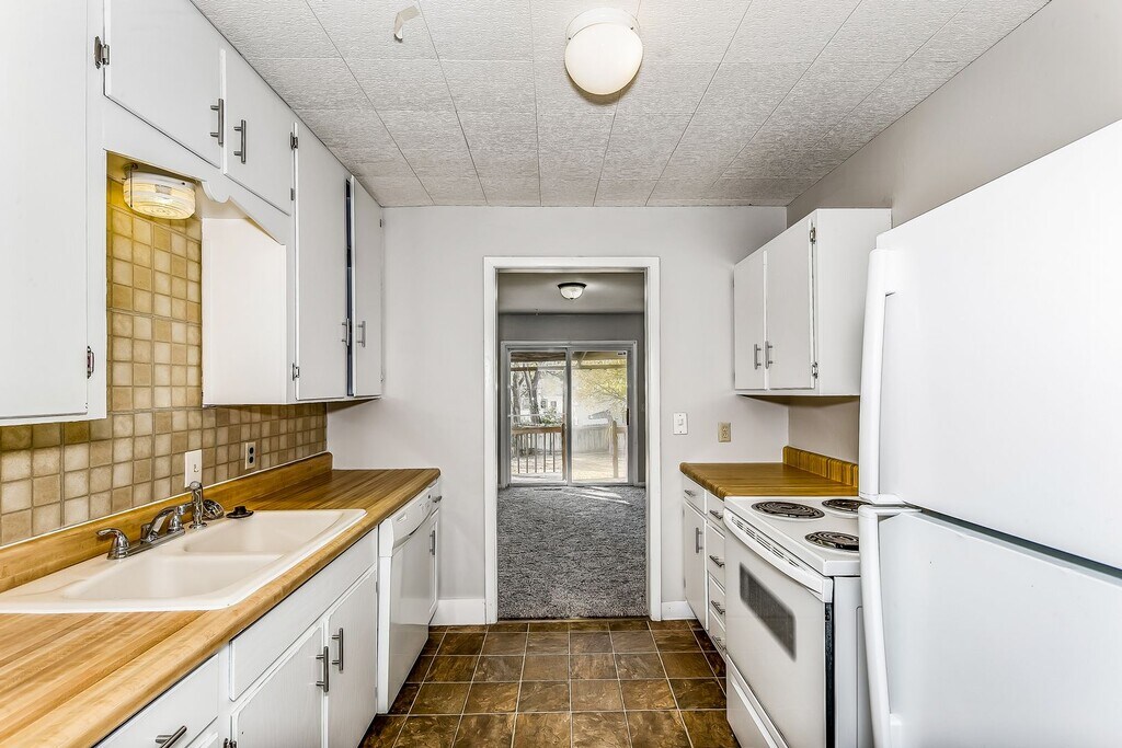 What a nice find! This 5 bedroom, 2 Bathroom boasts space and charm, with hardwood floors, character, and tons of square footage. Don't let a simple exterior fool you! Once inside this home you are greeted with a living area with brand new carpet and paint. Between this living area and a second living space, is a spacious kitchen with fridge, stove, dishwasher and newly updated cabinets. The den has an appealing faux fireplace with a stately mantle and unique built in shelving, sliding doors to a covered patio and yard, and provides access to the sleeping rooms in the home. There are three bedrooms on the main level.The master bedroom has large closets and a en suite bathroom. The hardwood floors in the other 2 main level bedrooms have been refinished. Upstairs there are two additional bedrooms with lots of light and space. The home also features an unfinished basement with washer/dryer connection, great to use as a hobby area or storage. There is also an attached one car garage. Tenant is responsible for all utilities and lawn care, including snow removal. Home is ready for move in now. Rent $1325 Deposit $1325 + $150 move in fee $35 application fee No Section 8 Pets not preferred but potentially negotiable with well qualified tenants.
