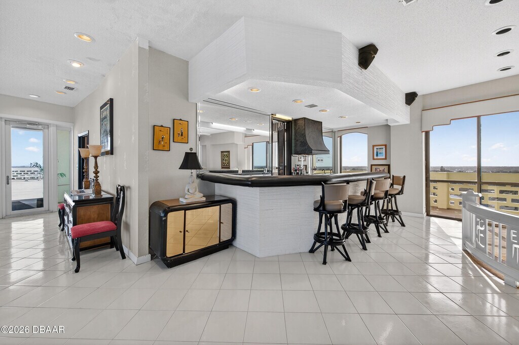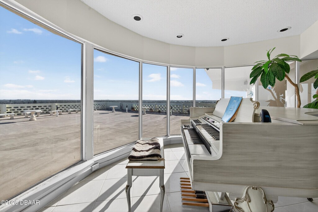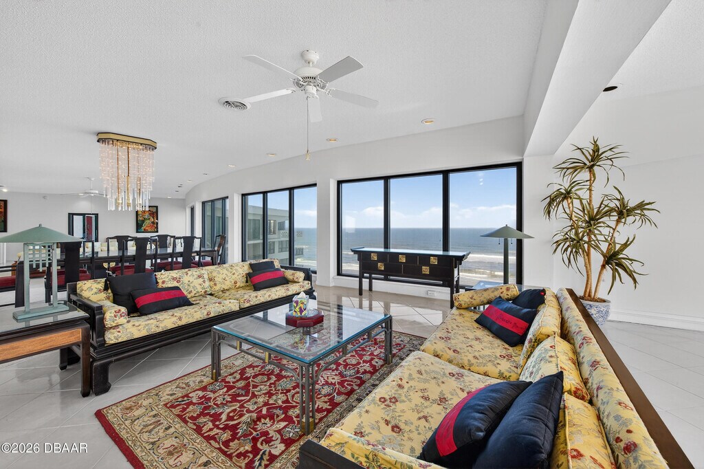 Come and see one of the most unique penthouse condos in Ormond by the Sea. This truly amazing 3 bedroom,3 1/2 bath 3,344 sq. ft. unit,plus a 2000 sq. ft. deck/patio,private 2 car garage. The entire east & south side of unit have 'window walls' for an amazing panoramic view. Balcony wraps around entire unit,and the patio extends over the roof top for more exceptional views. The patio has ample amount of stationary seating/tables and a patio bar for relaxing. Now let's get to the inside. Master bedroom has a super large walk-in closet and large bathroom with shower & sunken tub. Bedroom 2 has a super large walk in closet and private large bathroom with shower and large tub. Bedroom 3 has private bathroom with an extra-large,wide shower. There is a private bar and sitting room in condo,dining area,eat in kitchen large,2 living rooms. This is a very upscale condo that you are guaranteed to love!! It has everything designed for comfort!