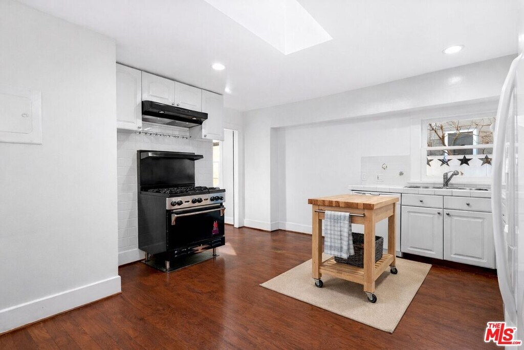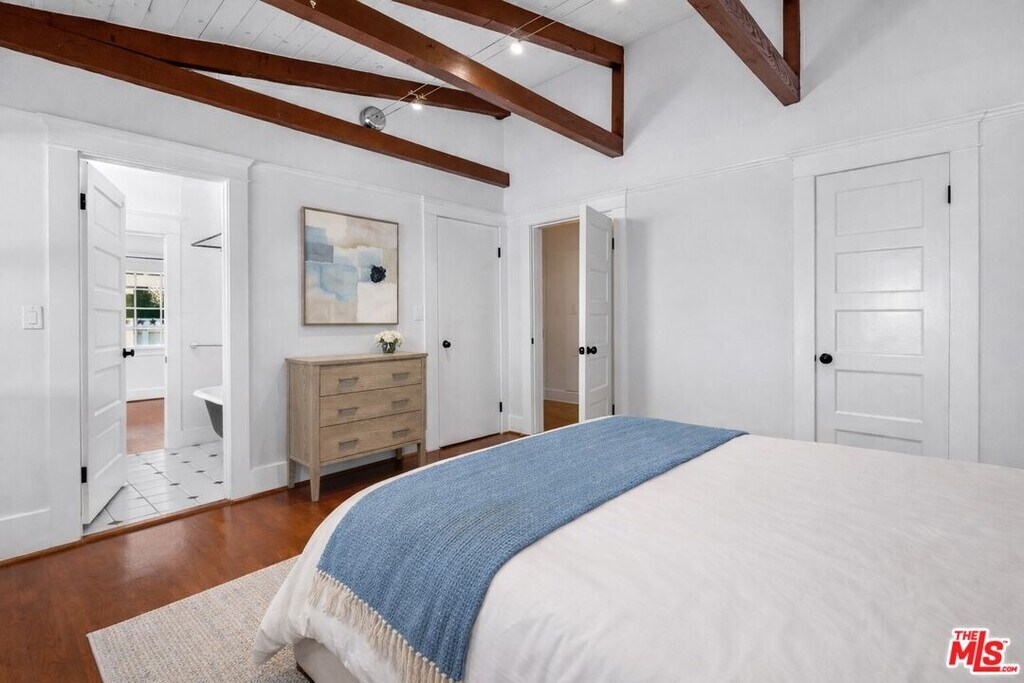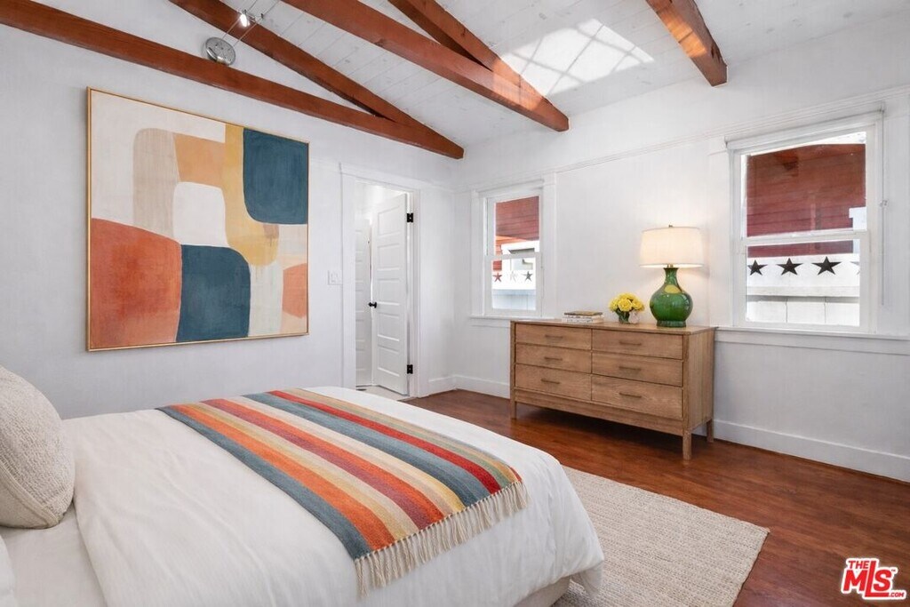 This three-bedroom Craftsman bungalow encompasses approximately 2,000 square feet of living space and has been thoughtfully updated over time, blending classic architectural charm with everyday functionality. A private, grassy front yard framed by mature citrus trees creates a welcoming approach and a sense of seclusion rarely found in Venice. Inside, the spacious living room sets the tone with a decorative fireplace, built-in bookshelves, and exposed wood beams that highlight the home's timeless Craftsman style. Adjacent to the living room, a generous dining area features a built-in buffet, ideal for entertaining and everyday living. Two well-proportioned bedrooms are located off the living room and share a charming bathroom with a classic clawfoot tub. Beyond the dining area, the kitchen offers both character and practicality, anchored by a classic Wolf range and complemented by a large walk-in pantry an uncommon and highly desirable feature for a home of this era. There is a brand new washer and dryer, as well as a new dishwasher. The primary suite is privately positioned at the rear of the home and is notably spacious, allowing flexibility for a secondary living area, creative space, or a full home office setup. The suite includes a large walk-in closet, built-in shelving, and an updated en-suite bathroom with a walk-in shower. A front porch provides the perfect spot to relax and enjoy the privacy of the landscaped yard. Plentiful street parking is available right in front of the fenced yard. Ideally located within walking distance to top restaurants and everything Abbot Kinney has to offer, and just a short bike ride to the beach, this home delivers the Venice Beach lifestyle in a peaceful residential setting close to vibrant activity. MLS# 25631201