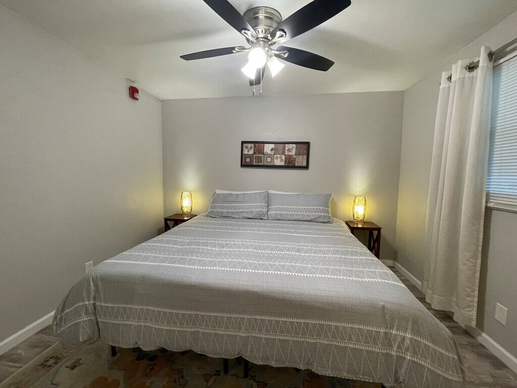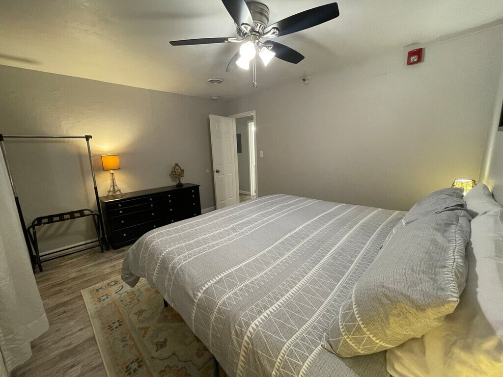 Located just 2 miles from downtown, this 2-bedroom, 1-bathroom suite is ideal for groups looking to get the most out of their budget and enjoy a stress-free stay. This upper unit is situated on the 2nd floor of a multi-unit apartment complex, offering easy access to the vibrant city life. Cozy up in the living room with a comfortable sofa and a 55" HD Roku TV perfect for movie time. Experience comfort in the cozy queen-size bed in the first bedroom and unwind in the luxurious king-size bed in the second bedroom. Enjoy intimate gatherings in the dining nook and prepare meals in the fully equipped kitchen. The apartment also offers 100mbps Wi-Fi for your convenience. Free unassigned parking is available behind the building. Guests are welcome to bring a maximum of two well-behaved pets, with a charge of $150 per pet for additional or unauthorized animals. A $50 fee will be added for reservations requiring extra cleaning after pets. No street parking is allowed. Less than a 5-minute walk to Walgreens, this apartment is perfectly positioned for exploring. Drive times to popular destinations include Downtown Appleton in 5 minutes, Fox City Performance Arts Center in 3 minutes, and Appleton Airport (ATW) in 15 minutes. For medical professionals, the closest hospital is Appleton Medical Center (AMC), just 6 minutes away. Effortlessly enter the unit via smart lock, with a code provided 24-48 hours prior to your booking date. No smoking or vaping is allowed inside the unit or garage, with an additional cleaning fee of $500 per incident. Quiet hours are observed from 9 PM to 7 AM daily to ensure a peaceful environment for all guests and neighbors. Please inform us in advance if there will be additional guests so we can provide extra towels if needed. [SI]