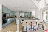 Beautiful furnished contemporary architectural jewel tucked away at the end of a cul-de-sac street in lower Doheny Bird Streets. Elevated from the street and behind stainless steel gates. Sun filled open spaces with walls of glass opening to patios and overlooking sparkling pool, spa and waterfall. Loft style living room with hardwood floors, gourmet kitchen, family room with fireplace, spacious bedrooms, elevator and a separate guest house/studio w/ bath. Long term tenants preferred. Some art and rugs are virtually staged and will not be included in the furnished rental. MLS# 25594739