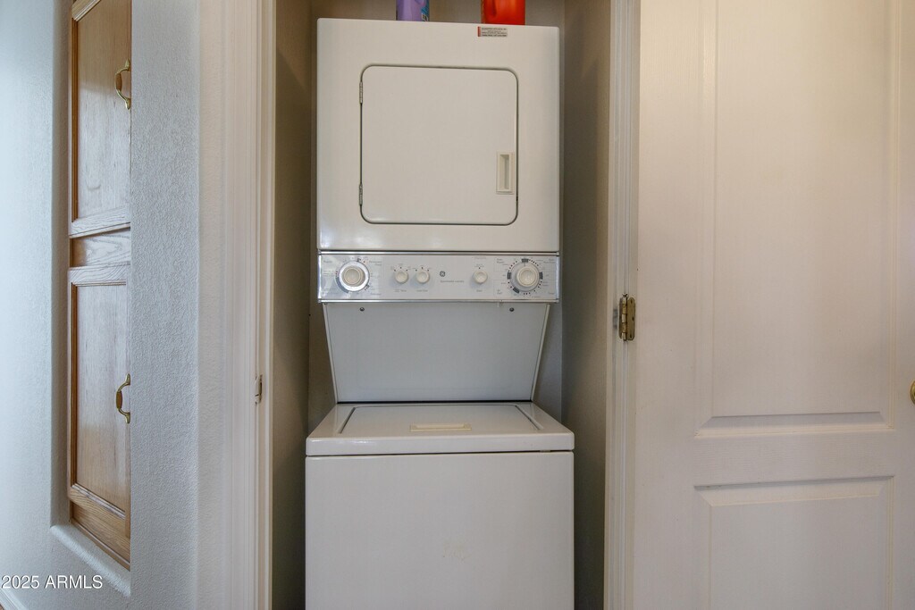 Move-In Ready! Complex requires at least one resident to be aged 55 years or older and all other residents must be at least 40 years or older. This fabulous 2-bedroom,2-bath condo is nestled in the highly desirable Desert Harbor neighborhood. Located in the tranquil Greenway Palms community. Enjoy this open floor plan with high ceilings,a spacious living room,and a private covered balcony. Fully Furnished Desert Harbor Gem Turnkey & Move-In Ready! which requires at least one resident to be aged 55 years or older and all other residents must be at least 40 years or older. Welcome to your ideal Arizona retreat! This beautifully maintained 2-bedroom,2-bath condo is nestled in the highly desirable Desert Harbor neighborhood,just minutes from Arrowhead area shopping,dining,and Peoria's P83 Entertainment District. Located in the tranquil Greenway Palms community,this upstairs unit is fully furnished and turnkey simply bring your suitcase and move right in. Enjoy a bright,open floor plan with high ceilings,a spacious living room,and a private covered balcony to soak in the Arizona sun. The kitchen comes equipped with all appliances,ample cabinet space,and a brea A stacked washer and dryer are included for added convenience. Greenway Palms is an active adult gated community featuring beautifully landscaped grounds,a heated pool and spa,shuffleboard courts,along with a clubhouse that hosts a variety of events and social activities. The condo also includes a covered parking space with RV and golf cart parking also available. Whether you're looking for a seasonal getaway or full-time low-maintenance living,this condo is the perfect fit! Furnishings optional. Furniture can be removed if preferred.