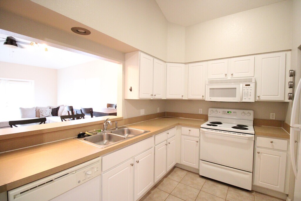 Welcome to this bright and spacious 2-bedroom, 2-bath condo located in the heart of Haile Plantation Village Center. This top-floor unit features vaulted ceilings, abundant natural light, and a private balcony. The open kitchen offers quality cabinetry, full appliance package, and a breakfast bar overlooking the dining area. Both bedrooms provide ample closet space, and a built-in desk nook is located just outside the primary suite. Additional conveniences include in-unit laundry and access to community amenities such as a pool, clubhouse, and fitness center. Perfectly situated above popular dining and retail spots with walking access to shops, restaurants, weekly farmers market, and scenic trails. The Route 150 bus stop is just steps away for easy commuting to UF, Shands, and surrounding areas.
